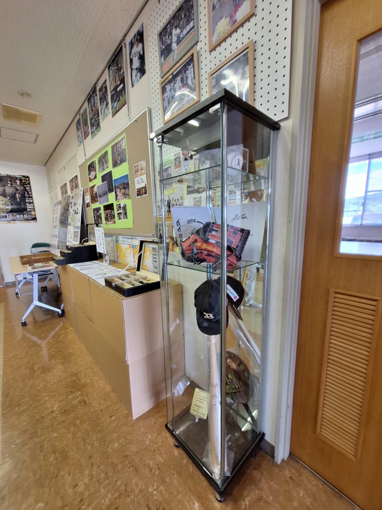 そして、地域のスターとなった「吉田正尚選手」グッズや、子ども達と撮影した写真など、子どもの憧れが膨らむ展示も飾ってあります。あそうづっこが自分なりの夢を広げ、羽ばたいていけるよう、励みになります。