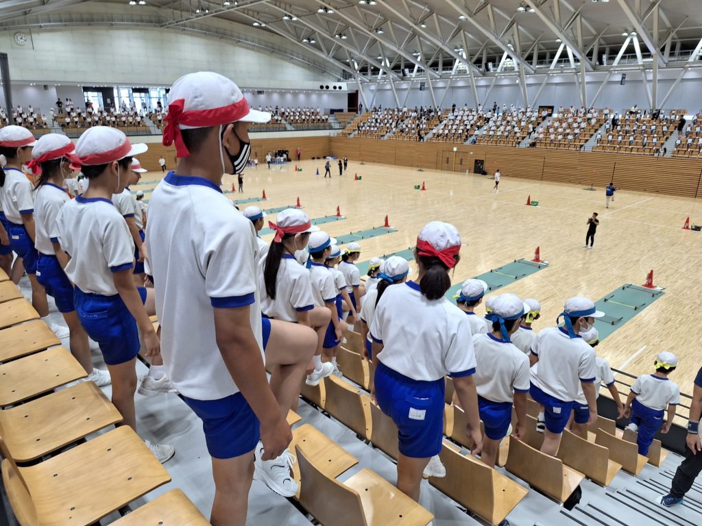 6年生対象のスポーツフェスタが、県営体育館で実施されました。かつて連合体育大会として記録会やマスゲームなどが行われた行事を、令和型に新しくしたものです。ニュースポーツを体験したり、陸上教室があったり、全ての子どもたちが参加できるスタイルになりました。