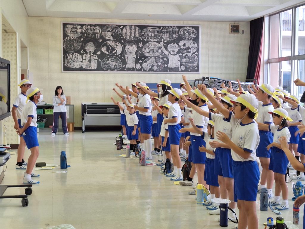 前に立つ6年生のリーダーたちが、ぐんと成長して見えます。校内体育大会を通して育つものがたくさんあるのです。