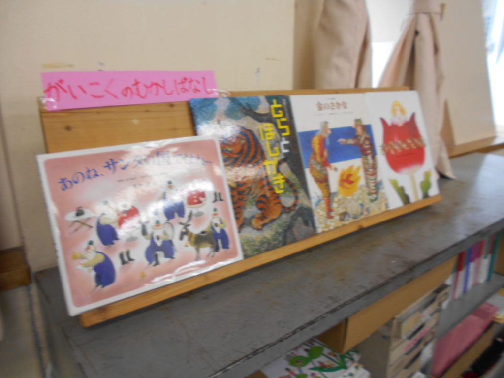 教室には、本校手作りの絵本台があって、表紙が見えるように本が置いてあります。いつもいる場所に、いつでも手に取れるように本が置いてある環境も大切です。これからの季節、図書館で借りた本を手元に置いて、手軽に本に親しむのもいいものです。是非どうぞ。