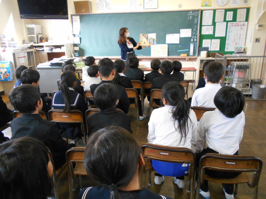 福井市の図書館から3名の司書さんにお越しいただいて、低学年のブックトークを行いました。生き物や季節など、テーマに沿ったいろいろな本の読み聞かせや紹介で、興味が広がります。