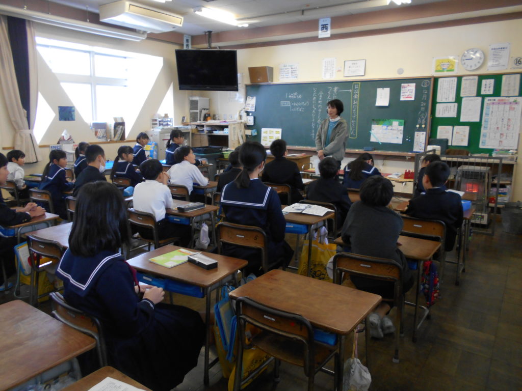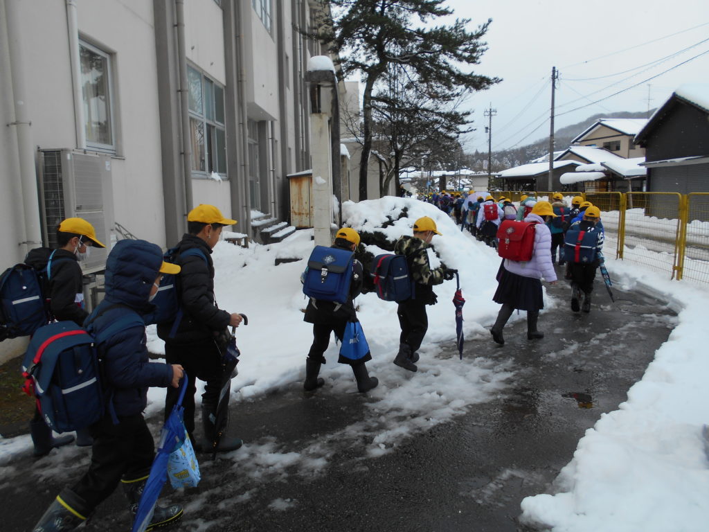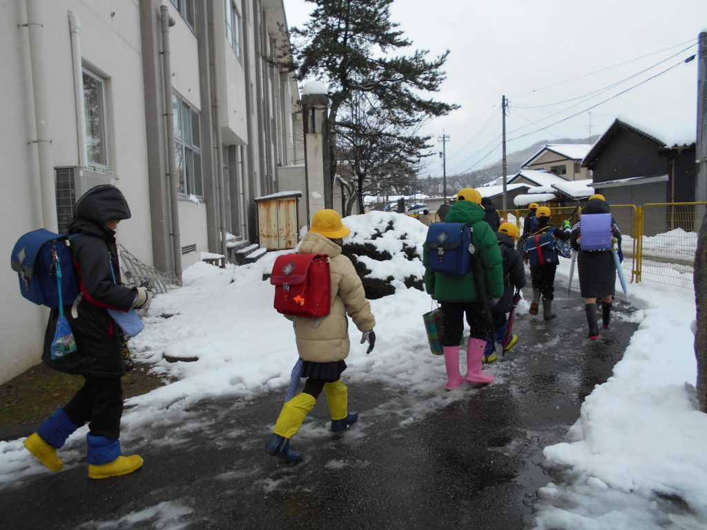 冬休み前の授業最終日は、放送を使った集会を行いました。町内こども会で、集団登校等の指導も行いました。