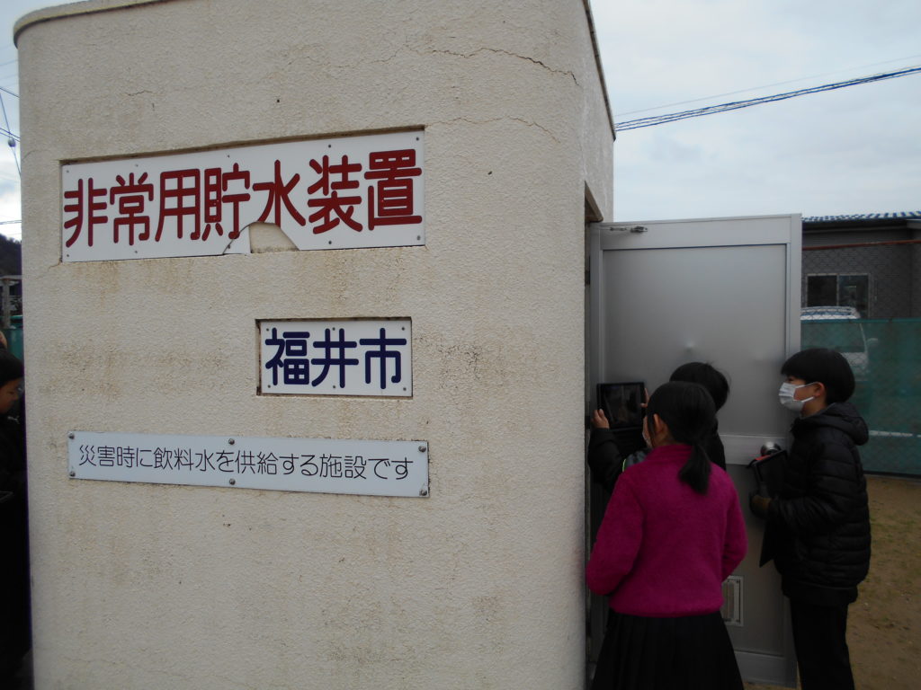 西校庭には、非常用貯水装置~災害時に飲料水を供給する施設です~と書かれた施設があります。初めて見るものばかりです。