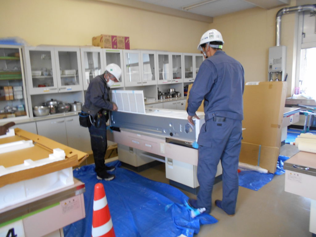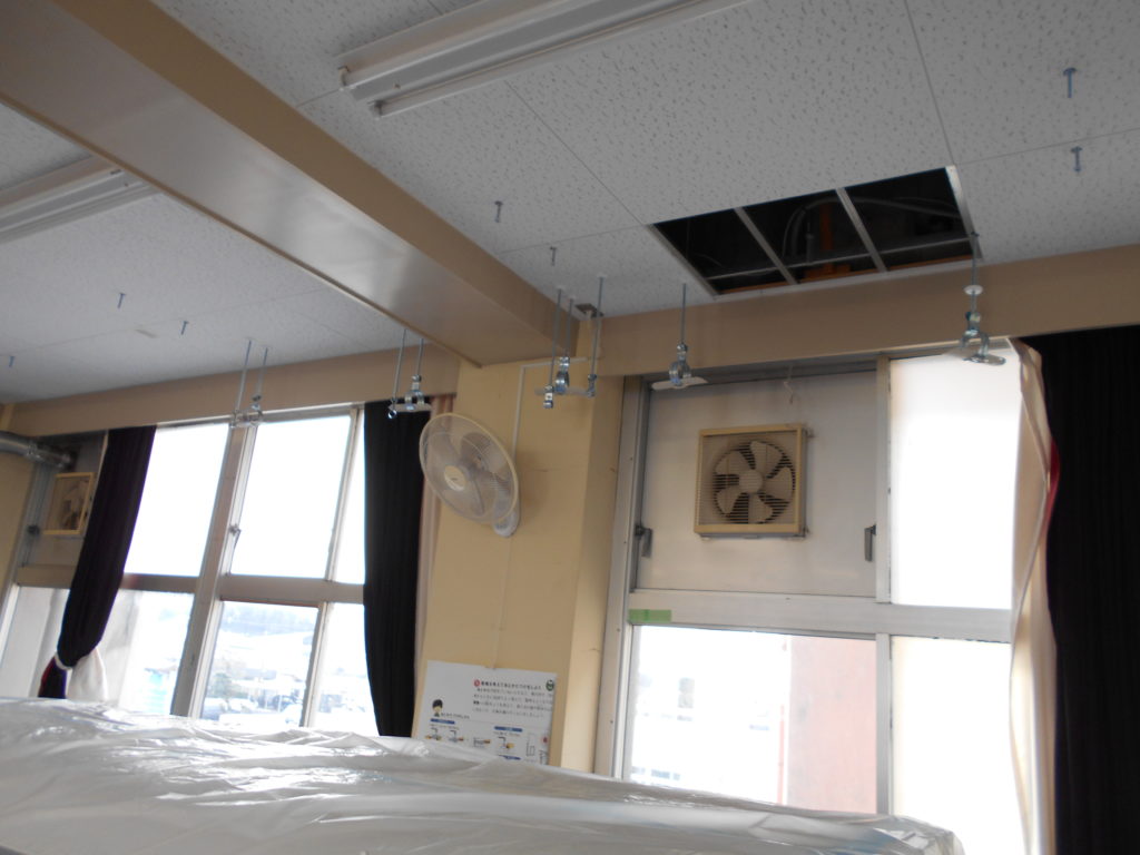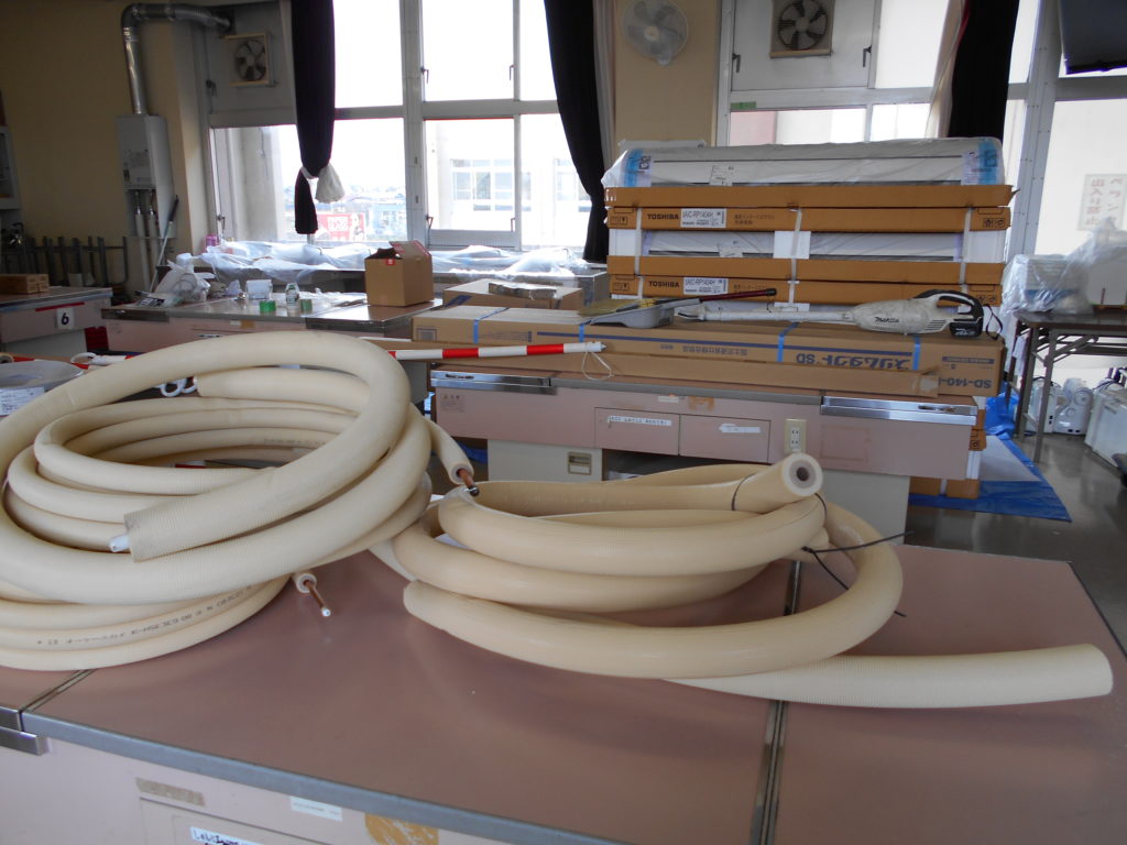 特別教室にエアコンをつける工事が始まっています。これまで教室にはエアコンがありましたが、家庭科室・理科室・図工室などはありませんでした。とてもありがたいです。