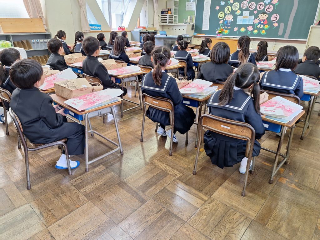 元気な1年生が入学しました。「おめでとうございます」と伝えると「ありがとうございます」とこたえ、嬉しそうに笑顔を見せてくれる子どもたちです。