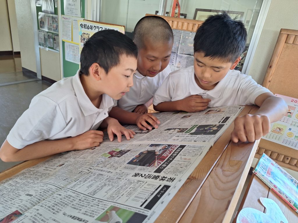 登下校の時に立ち寄ったり、休み時間に見に来たりする子どもたちが大勢います。そして、開いている新聞を見ると、いつも「スポーツ欄」。特に野球が人気のようです。