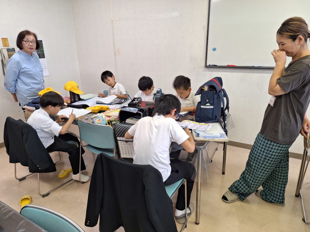 申込制で、希望する様々な学年の子どもが集まります。地域のボランティアの方々が、実にあたたかく子どもたちを見守りながら、家庭の雰囲気に近い形で宿題を進めています。終わった後は、ビーズでアクセサリーをつくったりパズルをしたりして楽しんでいます。