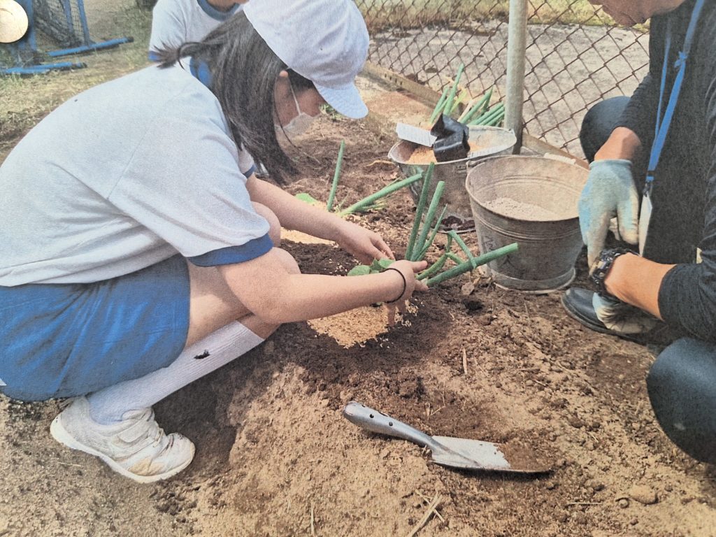 これらの体験ができるのも、地域の方のご支援あればこそ。連休などに肥料を入れ畑を耕し畝づくりを助けていただきました。そして、毎年子どもたちに教えていただいているのが、「コンパニオンプランツ」のことです。