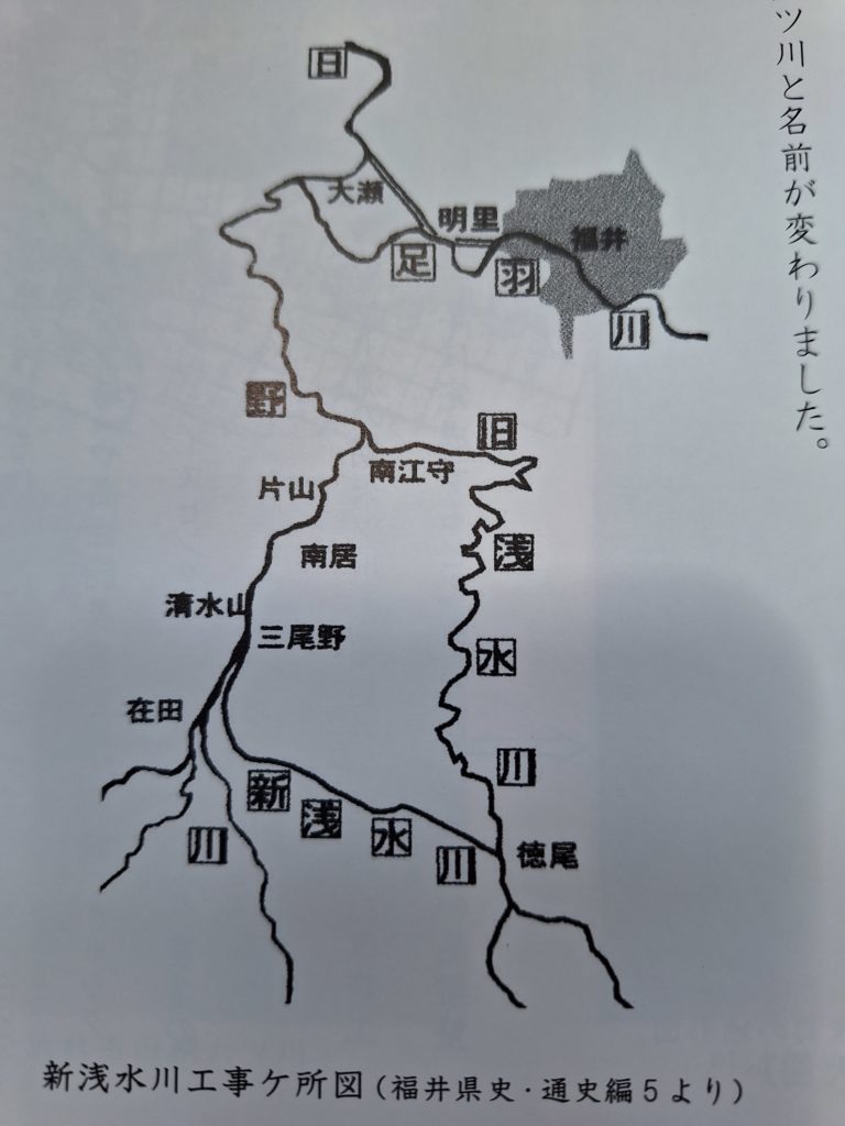 全校朝礼で、昔のあそうづ川について話をしました。今も浅水川は、福井県で7番目に長い川になります。浅水という名前がついているとおり、昔は麻生津平野の真ん中を曲がりくねって通った川でした。今の浅水川は、越前市の粟田部から鯖江市を通って日野川に流れ込み、麻生津地区をほとんど通らないように変わっているのです。