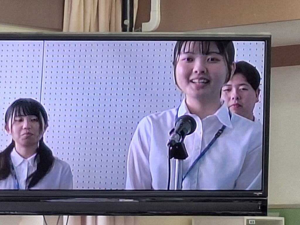 福井大学4回生が、本校で教育実習をスタートさせました。実習生が、お昼の放送で、全校の子どもたちに挨拶をしてくれました。