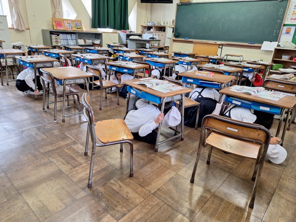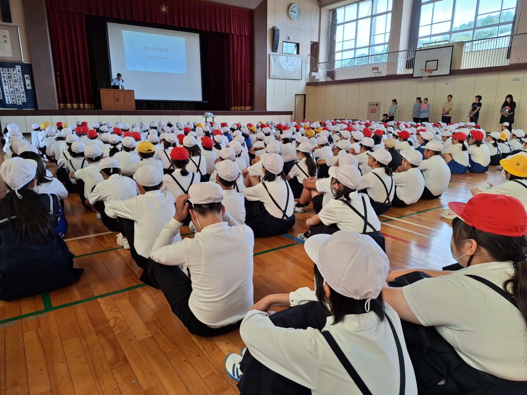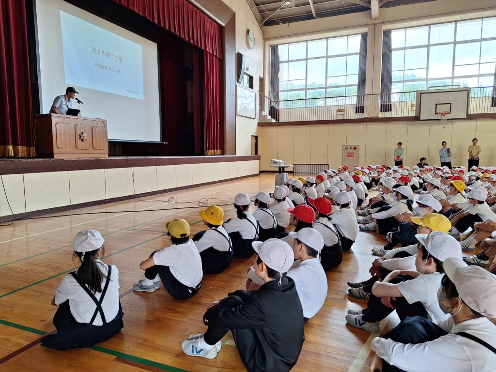 後半は体育館で地震のお話をしてもらいました。崩れたり倒れたりして危険な場所がないか、登下校でも気をつけるなど、場合によって身を守るすべは変わります。学校には楽しい活動もいろいろありますが、どんなときも命を守るため、真剣スイッチに切り替えられる経験も重ねていきたいと思います。