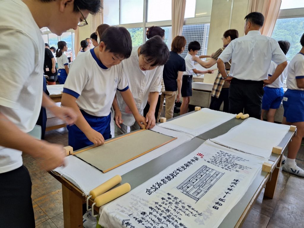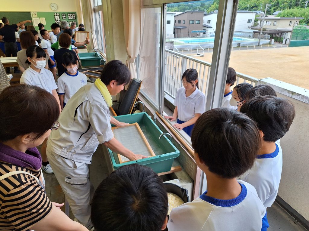 6年生が和紙づくりに挑戦しました。地域行事「観月の夕」の夢あかりに使うため、毎年6年生が体験させていただいています。公民館・自治会連合会、観月の夕実行委員会、地域・保護者ボランティアの皆様にお世話になり、毎年継続している貴重な体験です。ありがとうございます。