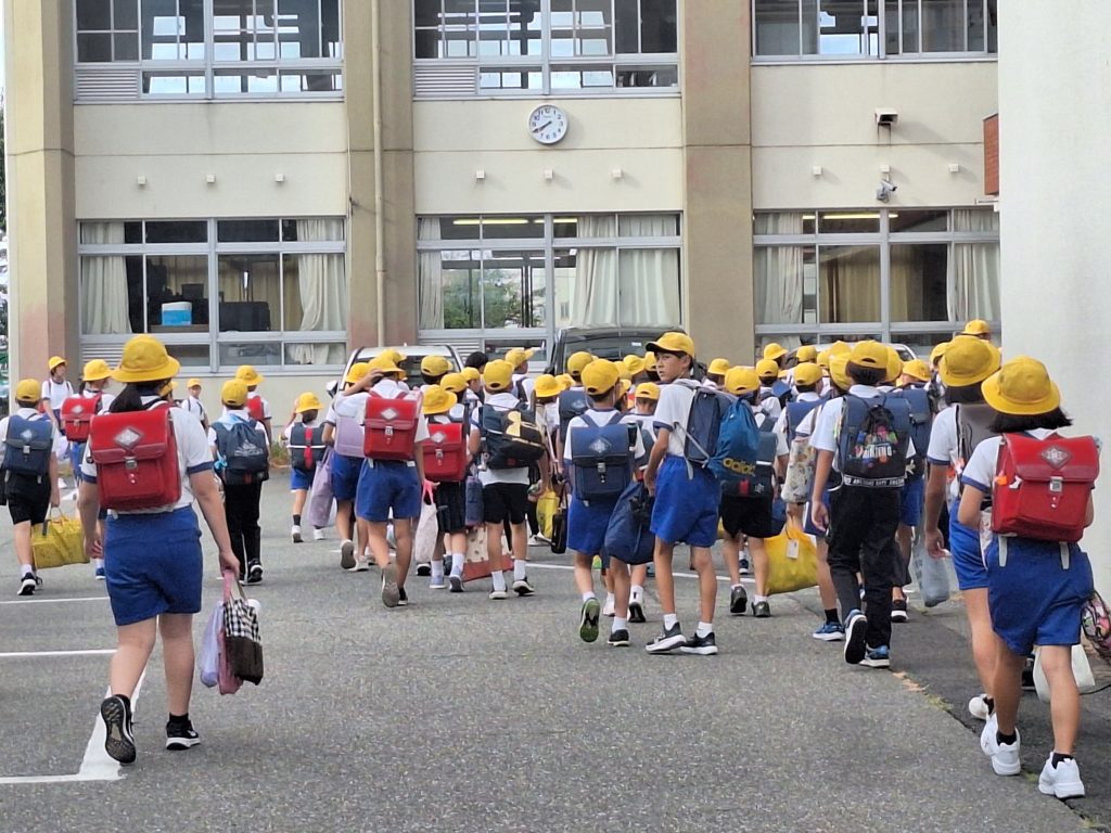 夏休み明けの登校初日。とても蒸し暑い日ですが、あそうづっこが元気に登校してきました。