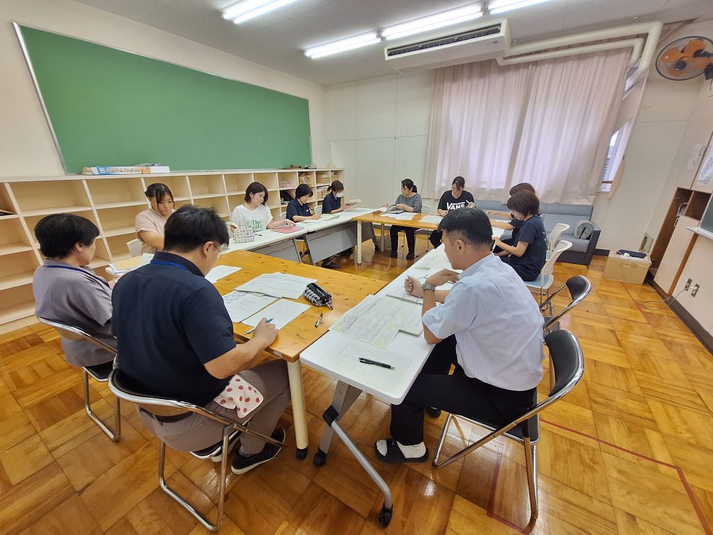 麻生津校区にある3つのこども園の園長先生や先生方が集まって、小学校で会議を行いました。コロナ禍もオンラインで工夫し続けた大切な会議です。就学前の子どもたちがどのように育っているのか、どのように小学校に適応し力を出しているのか伝え合いながら、子どもたちの育ちがつながるために、園小それぞれが互いに学び合います。