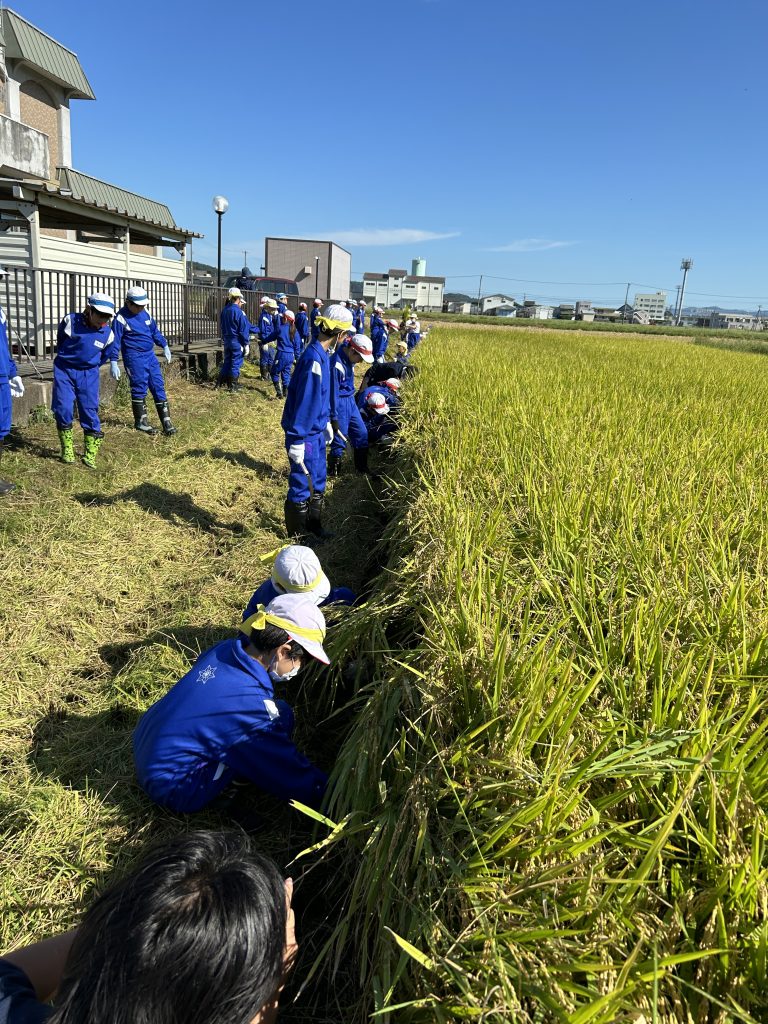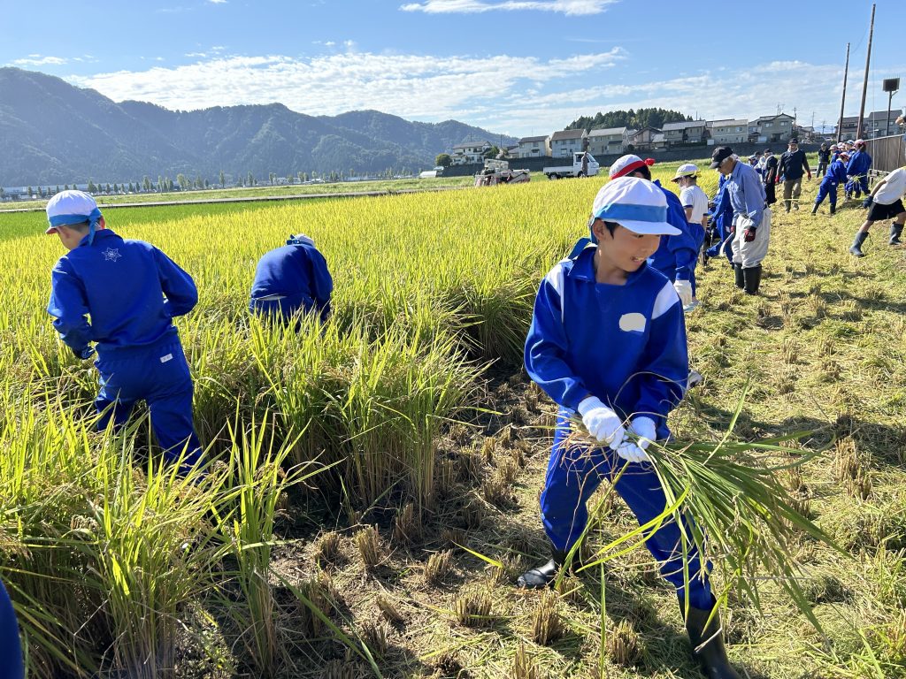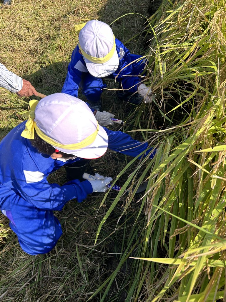 5年生が稲刈り体験をしました。JA様、地域の皆様にお世話になり、田植えと稲刈りが経験できます。5年生なりに、農業の大切さや実りのありがたみ、働く人への尊敬の念など、感じることはいろいろあったようです。貴重な体験を支援してくださって、ありがとうございました。