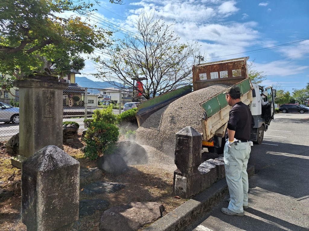 元あった砂利がほとんどなくなり、草も広がりやすかった空間に、新しい砂利をたっぷり入れ、整備しました。子どもたちが「大事な場所なんだね」と自覚してくれました。様々な時代を経て、歴史的に多くの方の思い入れがある石碑です。今のあそうづっこが大人になっても、きっと守ってくれると思います。
