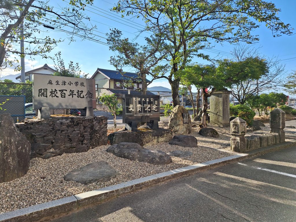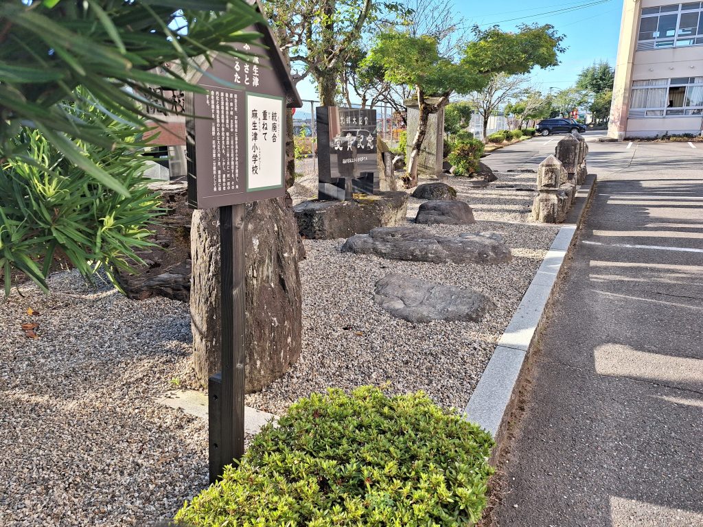 本校が150周年を迎えるまでに、様々な節目がありました。県道沿いの歩道橋近くには、100周年やPTAの文部大臣表彰、海軍大佐だった方の石碑寄贈など、その時代ごとに整備された石碑があります。