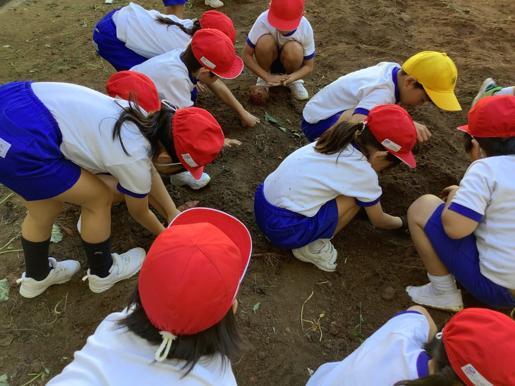 150周年記念式典でも紹介したように、戦時中は校庭の半分がサツマイモ畑であったとか。食糧難の時代を支えたサツマイモ。今も1年生が栽培体験をしています。イモ掘りの喜びを、感謝や様々な興味関心に広げていきましょう。