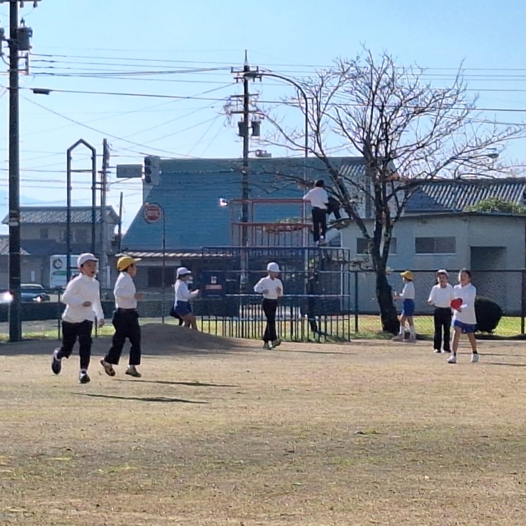 冬の貴重な晴れの日。大休み、大勢の子どもたちが外に出て遊んでいます。太陽の光を浴びて、午前中体を動かすのは心身ともにとてもいい影響があります。ジャングルジムや鉄棒、おにごっこ、キックベースボールと楽しみ方はいろいろですが、駆け出す子どもたちがとても嬉しそうです。家に帰るとゲームの通信でつながるような遊びも広がりがち。貴重な晴れの日の遊びを大事にしたいものです。