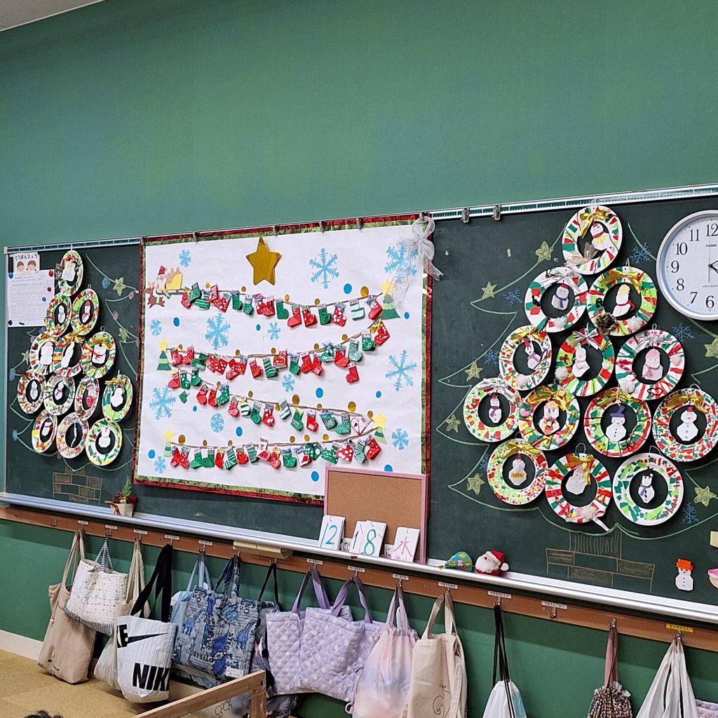 今日はクリスマスに関する場面がいろいろありました。本校の特別支援学級は、中学校や近隣校との交流会を行いました。手作りの飾り付けの空間で、クリスマスの曲をみんなで上手に演奏し、とても満足感のある交流会でした。卒業生との再開でたくさんの笑顔も見られ、とてもよかったです。