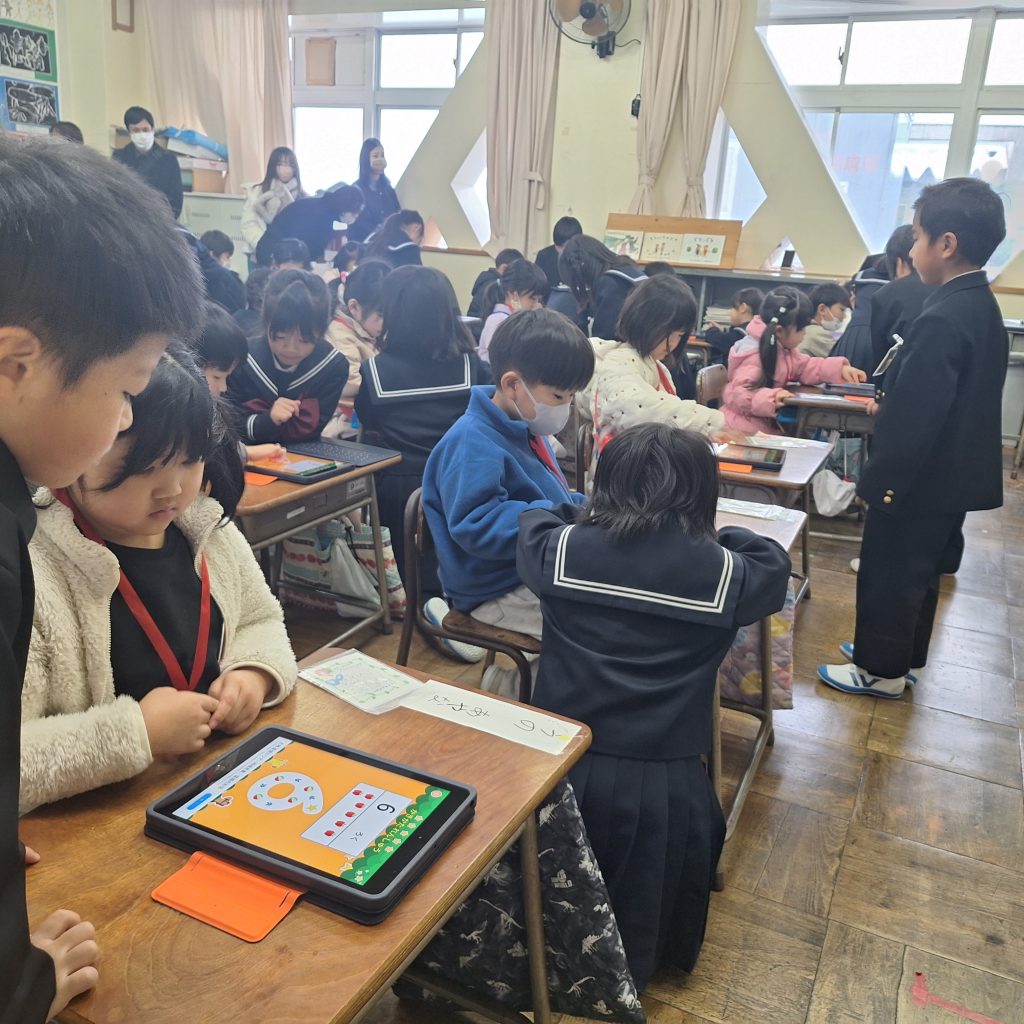 1年生が「入学前のお友達に学校のことを伝えたい」「仲良くなりたい」と思って準備した交流会。とてもよくがんばっています。年長の皆さんは、よく見て、よく聞いて、小学校生活を楽しみにしていてくれるのがわかります。