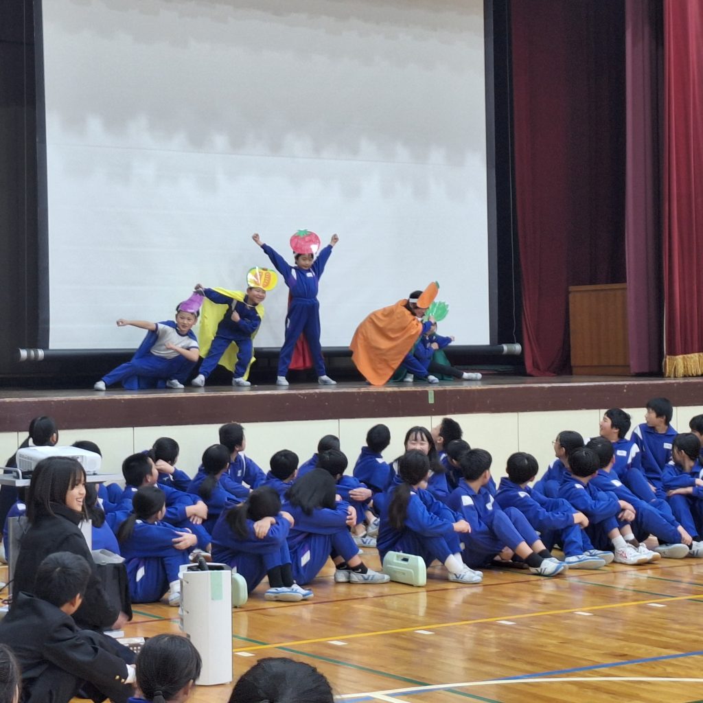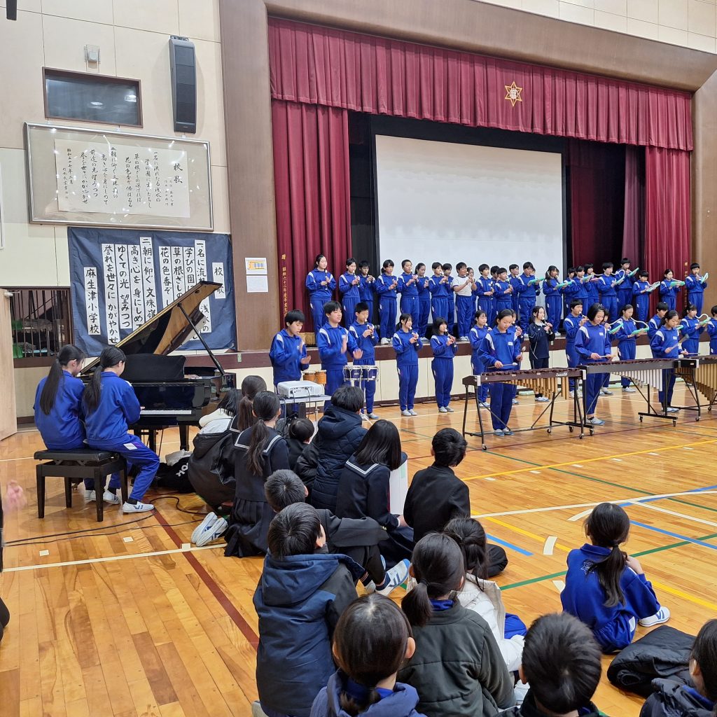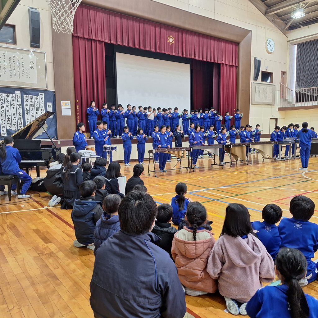 学年ごとの工夫を凝らしたメッセージやゲーム、6年生の演奏などのたびに、1年生から「すごい」と喜びの声があがります。5年生は次のリーダーとして立派に会を盛り上げてくれます。それぞれの持ち味が6年生やみんなに伝わって、あたたかくて皆が嬉しそうな 笑顔が広がる「6年生を送る会」。一つになってとても素敵な会ができました。