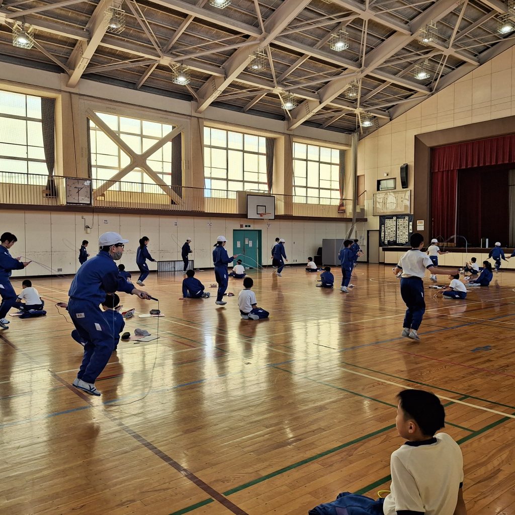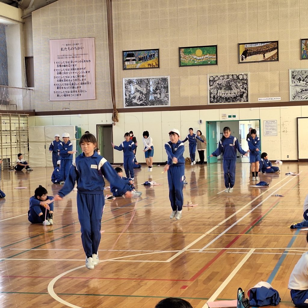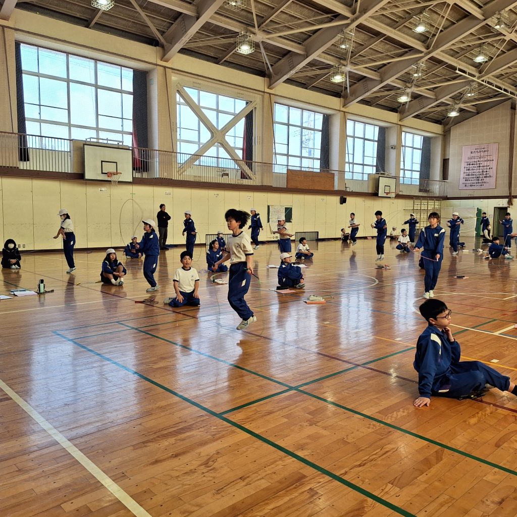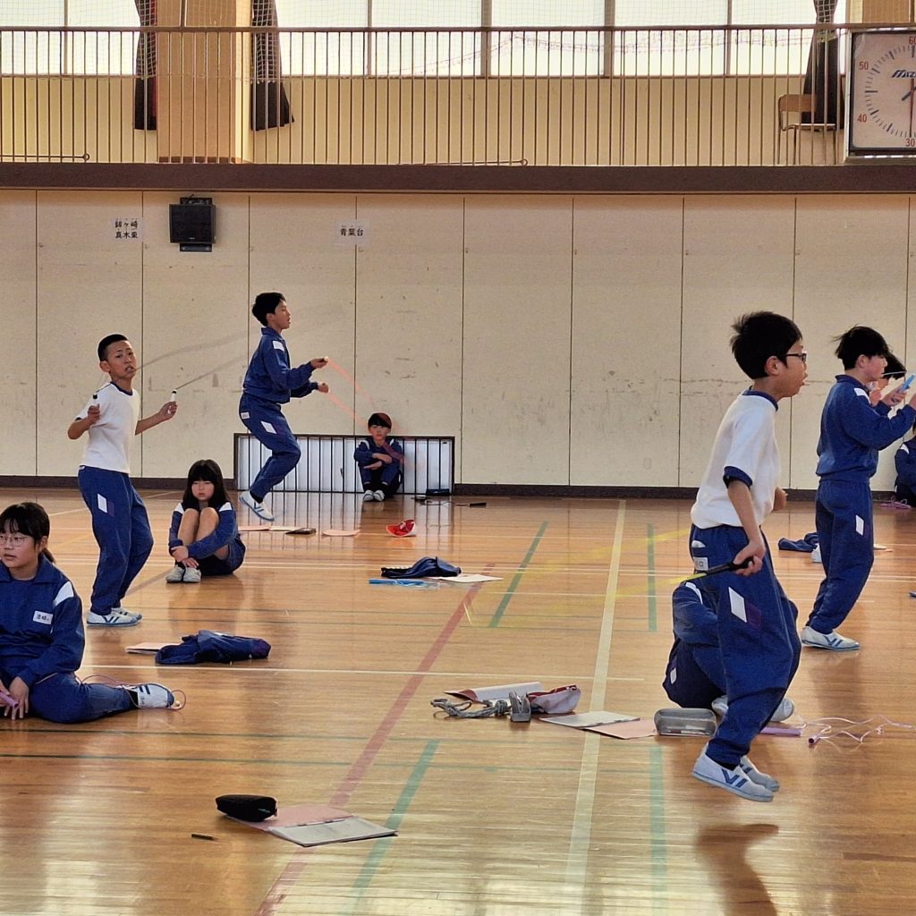 5年生のなわとび大会。個人の競技もグループや学級のチーム大縄も、子どもたち一人一人の表情が素晴らしくいきいきしています。得意不得意でなく、目標に向かって力を出す喜びがそこにあります。