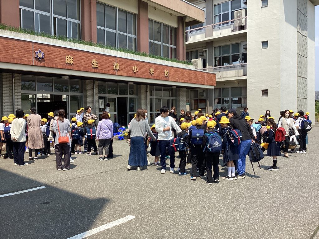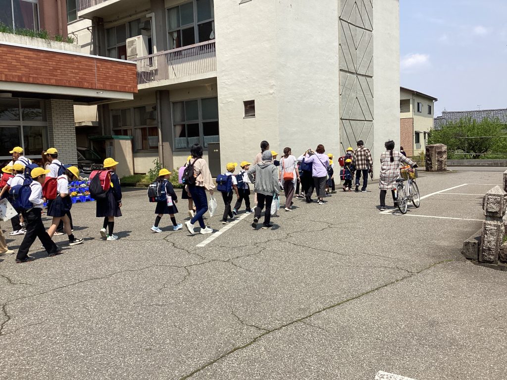 授業参観の後の懇談会の時間帯に、引き渡し訓練がなぜ必要なのかを、教務の宇野先生が体育館で子供たちに写真をまじえながらお話しました。福井震災のことや避難の時に大切なことなどを、子供たちはしっかり集中して聞いていました。その後の引き渡し訓練では、町内ごとに、お家の方と集まって一緒に帰っていきました。子供たちの安全を守るために、とてもいい活動ができました。保護者やご家族の皆様、半日ご参加いただき、本当にありがとうございました。