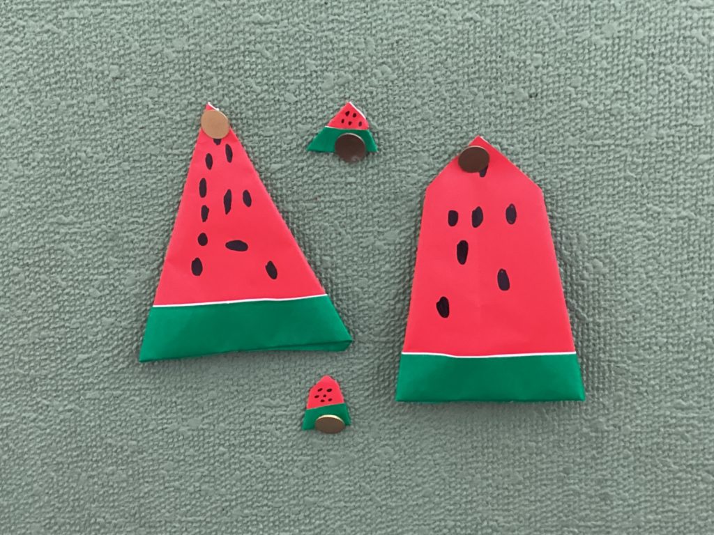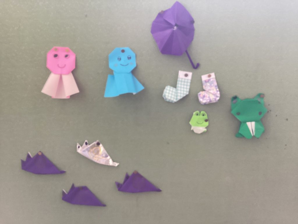 たすく学級の掲示板に、「夏」を感じさせてくれる飾りが貼ってあり、思わず足が止まりました。まず目にとまったのが「スイカ」です。リアルな種に感動しました。これを作った子は「スイカ」をよく観察してるのだと思います。種を取り除きながら食べる姿が想像できます。今日から梅雨にも入り、むし暑い日々ですが、この掲示板が強い味方になりそうです。たすく学級のみなさん、ありがとう!
