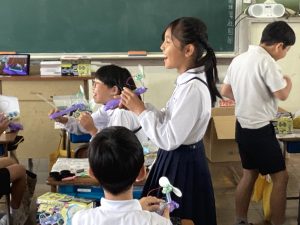 4年生のそれぞれのクラスが理科と国語をしています。理科では、「電流のはたらき」の学習をしていました。教室に入るなり、楽しそうに自分の教材「ハンディ・ファン」を作っています。「校長先生!」とハンディー・ファンが完成してプロ […]