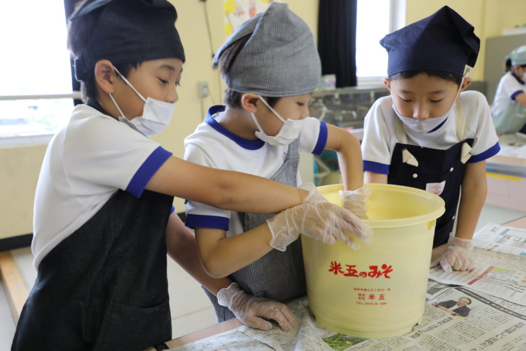 3年生が、総合で「みそづくり」に挑戦しました。以前、醤油のことについても体験している子供たちなので、より一層楽しみにしていたようです。ゲストティーチャーの方のお話に耳を傾けながら、大豆の感触を楽しんだり、水をそっと入れていったりして、友達と役割分担しながら進めていました。できあがりが楽しみです。
