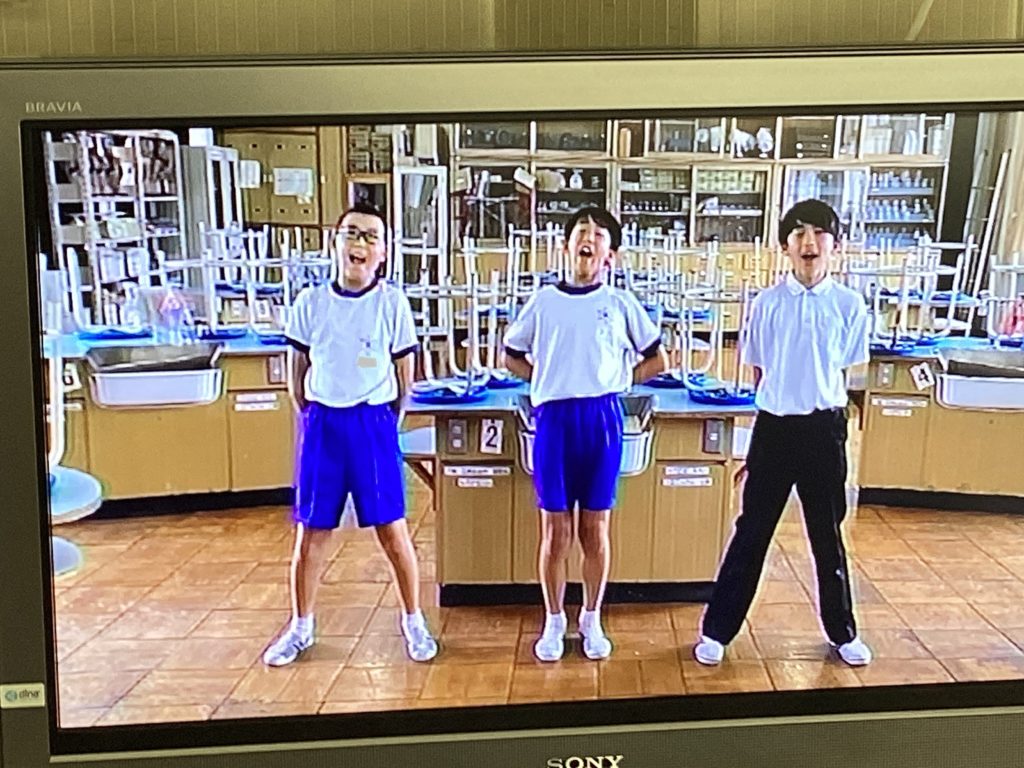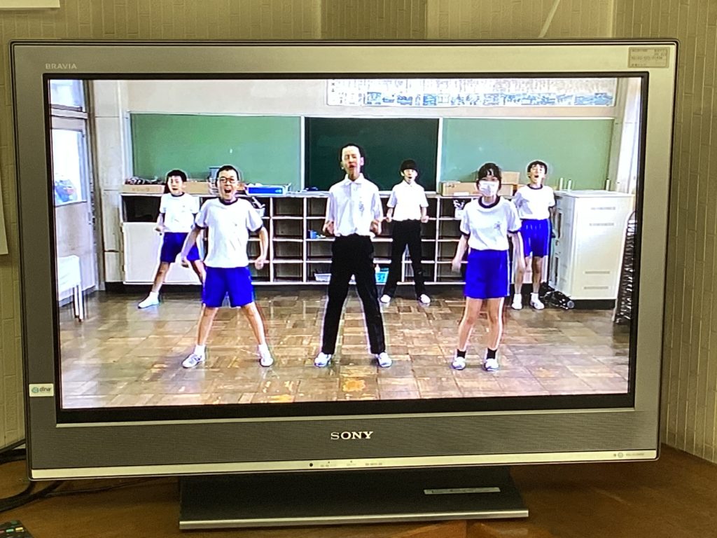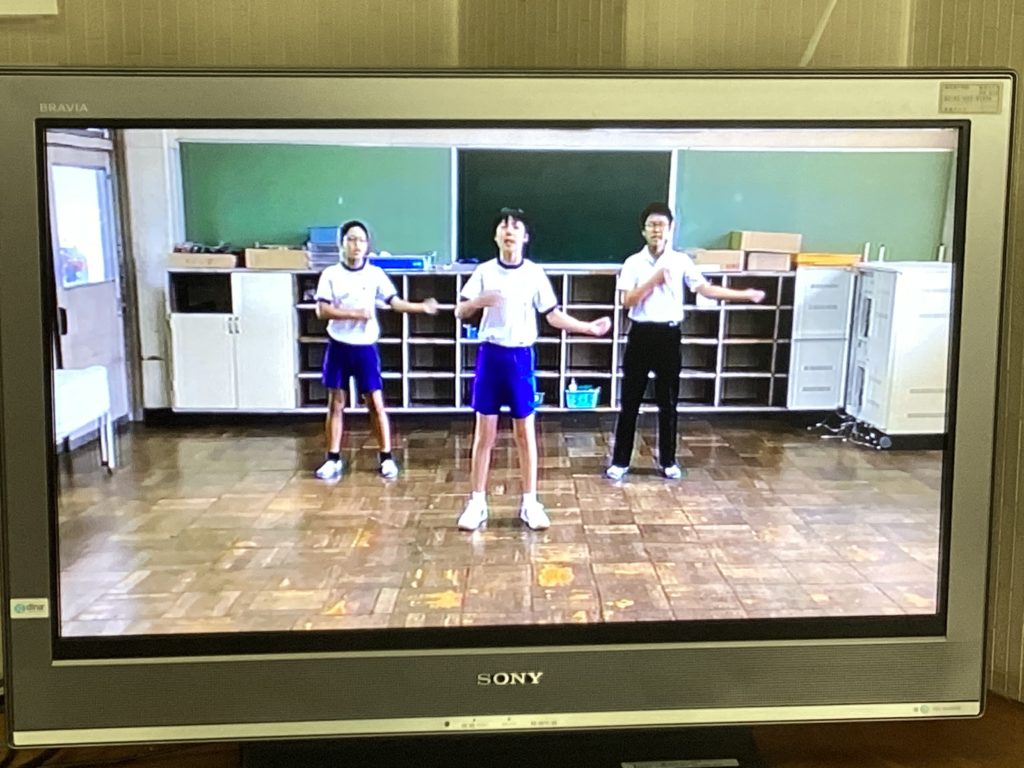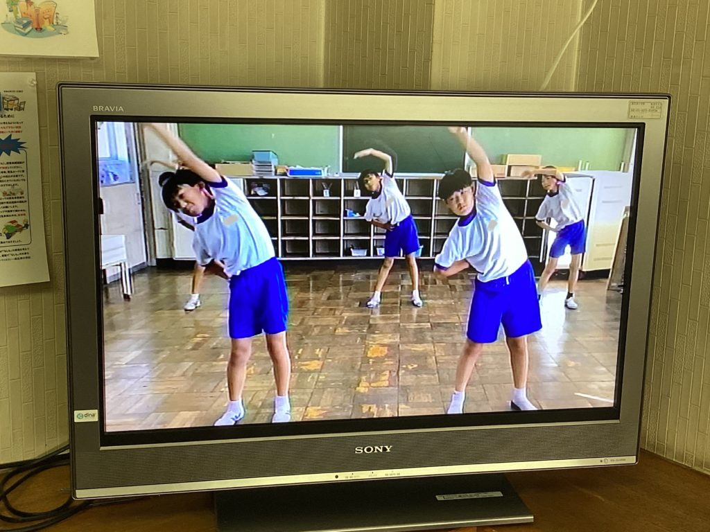 10月1日の体育大会に向けて、いよいよ始まります!給食中に、6年生が考えた応援の動画が流れてきました。楽しそうな音楽も聞こえてきます。1年生は、初めての麻生津小学校での体育大会なので、わくわくしながら見入っていました。中には手拍子をしながら見ている子もいます。憧れの6年生のお兄さん・お姉さんの応援や準備運動の動画を見て、いっそう、体育大会が待ち遠しくなったようです。