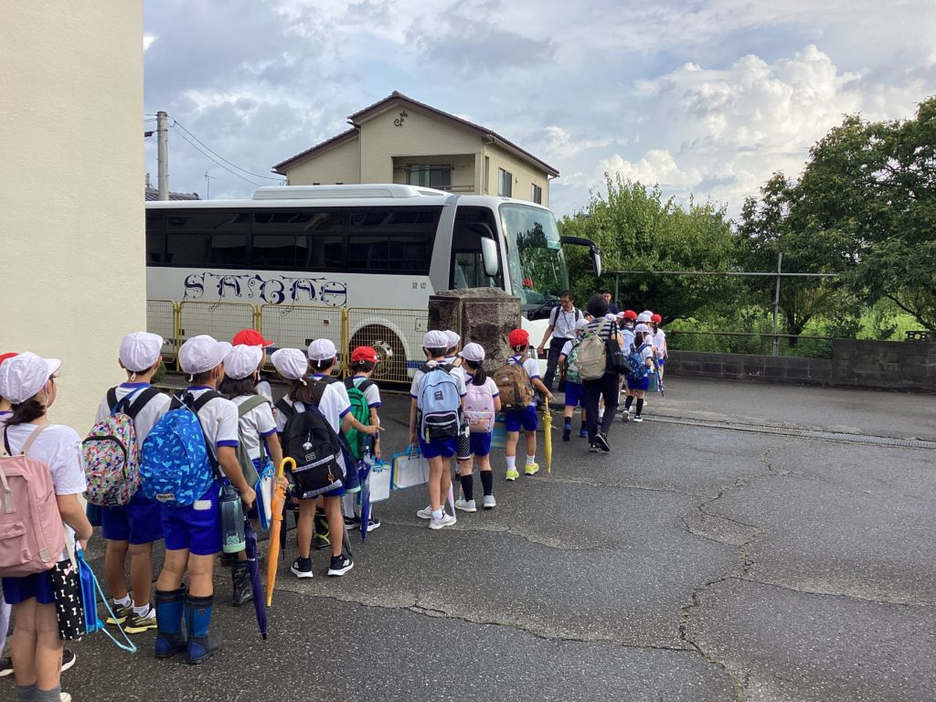 3年生が社会科の学習の一環で安田かまぼこ工場、福井市防災センター、みんなのおかし市場へ行ってきました。明け方までどしゃぶりの雨でしたが、出発の時には曇り空になり、張り切って出かけていきました。