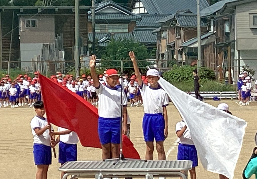 今日は、全校で開閉会式の練習を行いました。校庭には、赤とんぼも見られ、秋の気配を感じました。本番もこのような天気だといいなあと感じています。放送委員や運営委員、そして、6年生の団長・副団長が前に立ち、一通り、リハーサルを行いました。リレー・綱引き・応援・学年種目、委員会の仕事と、着々と準備が進んでいます。