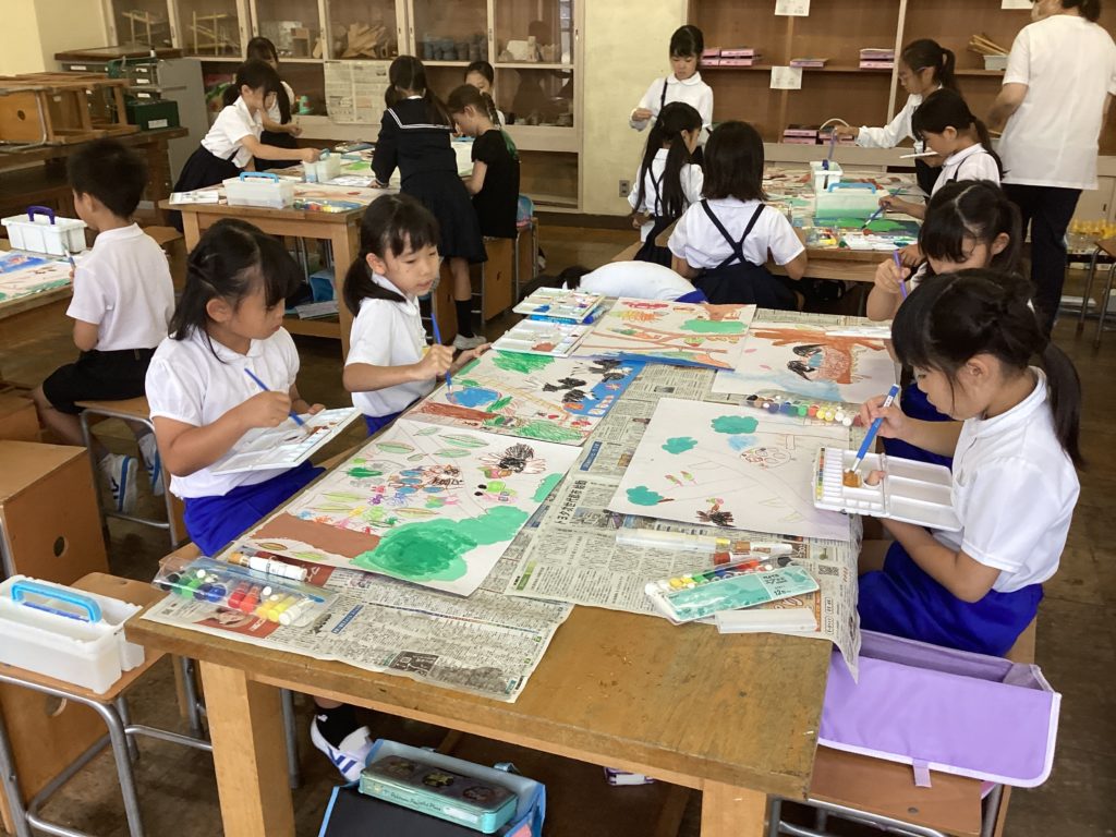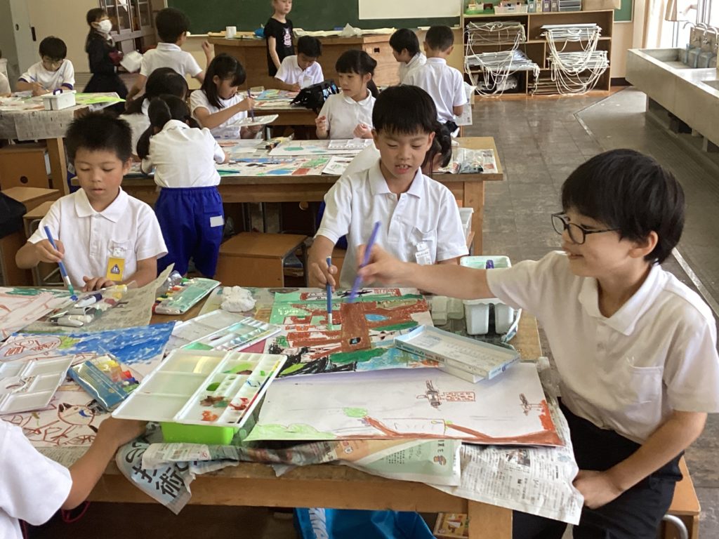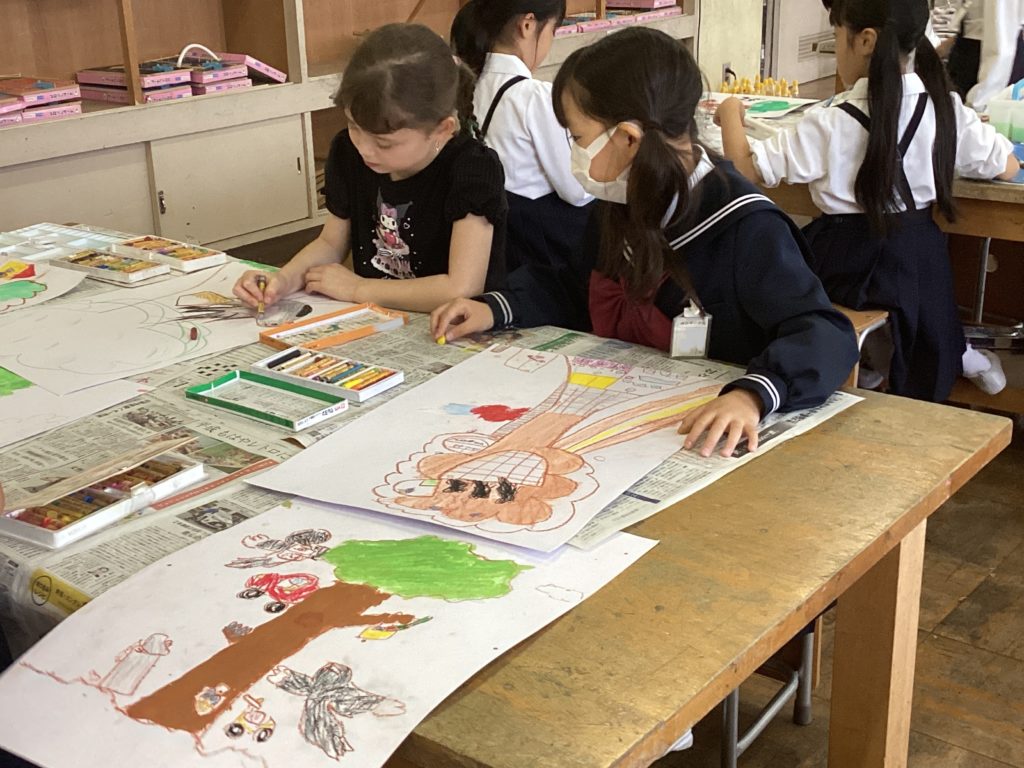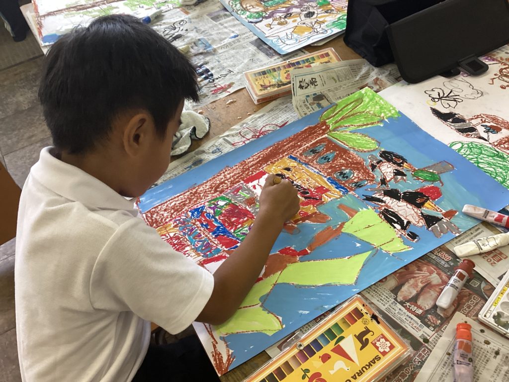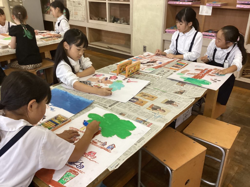クレヨンで細かく描く子、色作りに夢中になる子、水の量によって色の濃淡を試している子、塗り方をいろいろ試している子、どの子も、楽しそうに学習していました。