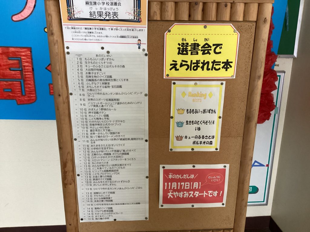 松平文庫設置に向けて、7月に全校児童対象に行った選書会。自分の好きな本を選びました。その結果をもとに、本を購入しました。結果は本校の児童玄関に掲示してあります。学校司書の方からは、ペットやスポーツ、料理の本が人気だったと聞いています。大谷翔平さんの本も人気でした。おかげさまで、各教室の学級文庫も充実しています。