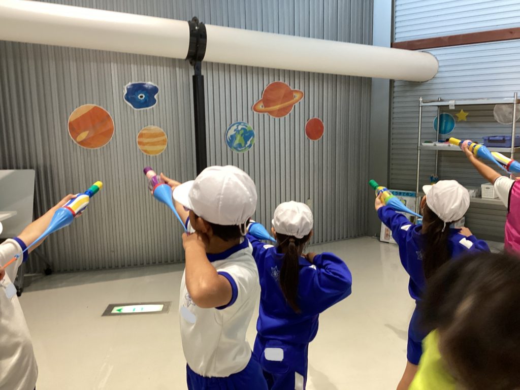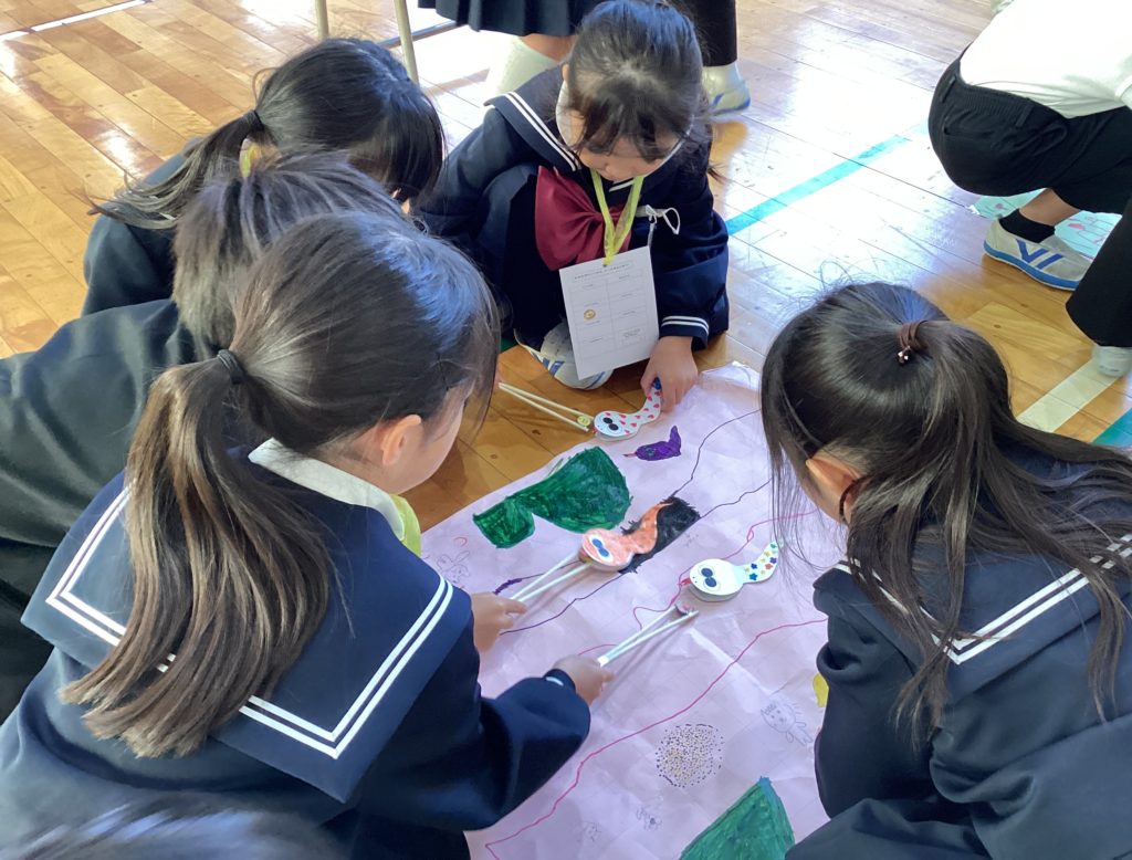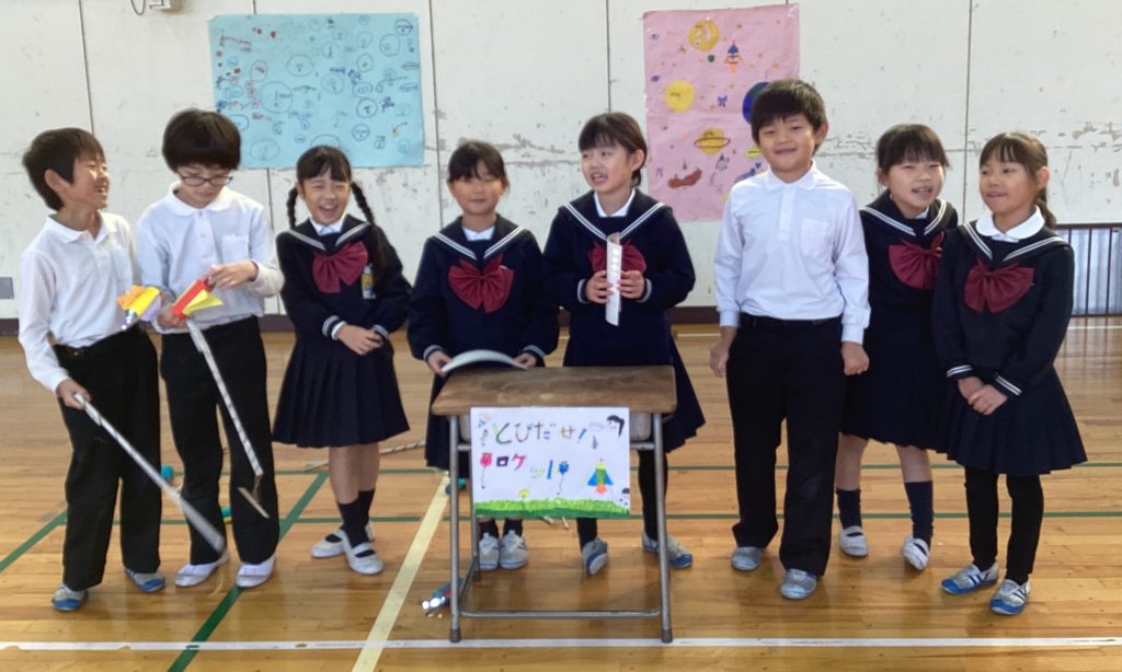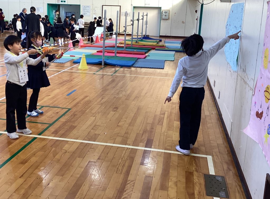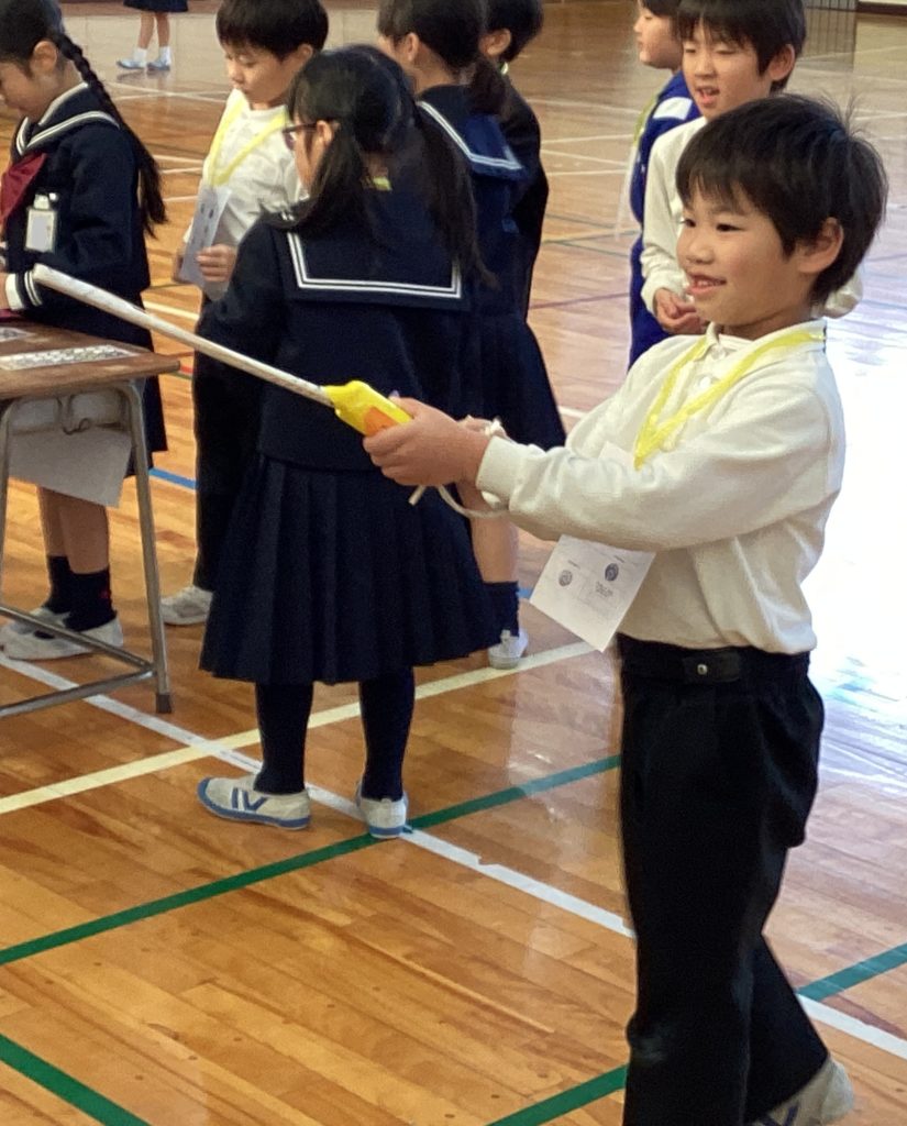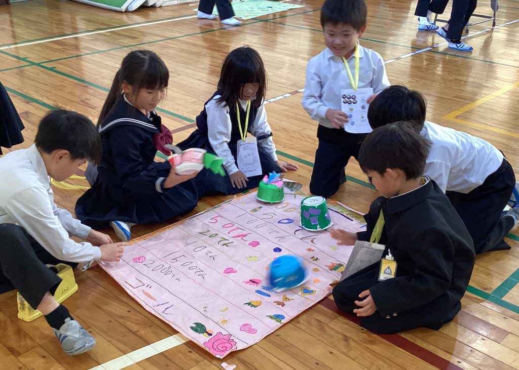 コーナーは7つ。とことこがめ、ほしロケット、パックンへびさん、とべとべくん、ビュンビュンカー、コロコロころん、とびだせロケットです。2年生は、受付係がシールを貼り、説明係が「まずやってみよう!」「うまいよ~」「こうやってやるんだよ」「もう1回やってみる?」「ここに当てるといいよ」 など、とっても優しい声かけをしていました。お客さんが来ないと、笑顔で「いらっしゃいませ~」と呼び込みをしています。1年生も楽しいのか、嬉しそうに何度もチャレンジし、最後の感想では「2年生が作ったとは思えないぐらい楽しかったです」「全部楽しかったです」と言っていました。微笑ましい光景がたくさん見られました。思いやりのある子供たちです。