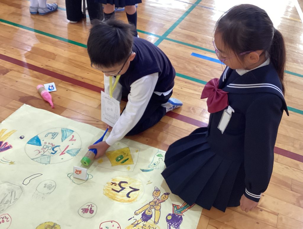 2年生が「おもちゃランド」に1年生を招待しました。2年生は10月のはじめに、エンゼルランドで、動くおもちゃ体験をしています。その時の学びを生かして、生活科の授業でおもちゃ作りを行い、おもちゃランドの企画・運営を行いました。司会や挨拶、各コーナーの紹介など、一人一役で、とっても立派な姿を見せてくれました。さすが2年生です!1年生も集中して説明を聞き、カードをぶら下げて遊びに入っていきました。