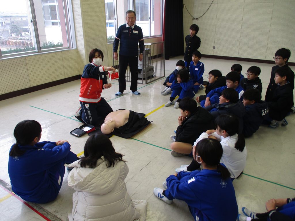 5年生が、命を守る救急救命講座を受講しました。ゲストティーチャーの方に丁寧に教えていただき、体験活動を行いました。AEDのデモ機と心肺蘇生用トレーニングキットを使用し、グループに分かれて心肺蘇生を体験しました。一人一役で、救命処置の手順にしたがって行います。
