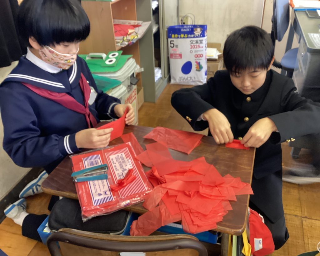 5年生の教室をのぞいてみました。エールを送る会に向けて、在校生の最高学年として、夢中で進めている姿が印象的でした。どの子も、自分の役割をがんばっていました。企画を考える子、作り物をしている子、色塗りをしている子、様々です。「6年生のために」という優しい気持ちが伝わります。工夫したところを、そっと教えてくれる子もいました。6年生にはヒミツだそうで、あまり写真に載せられませんが、とっても素敵な会になる予感がします。5年生、頑張って!