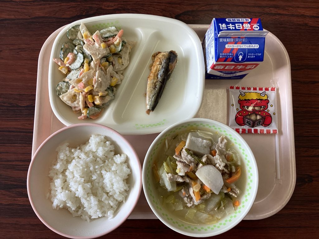 今日は、節分給食です。いわしの梅煮や節分豆が出ます。今年の災難ばらいと福を祈って、いただきましょう。