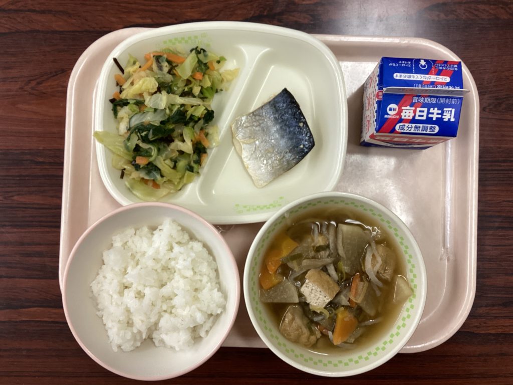 今日の給食は、ふるさとの日給食です。牛乳、ごはん、焼きさば、キャベツの梅昆布あえ、ぼっかけ汁です。焼きさばは、ほとんど小骨がなく、とても食べやすかったです。キャベツの梅昆布あえは、たくさんの野菜が入り、栄養満点です。梅の酸っぱさがほんのり効いていて、おいしく頂きました。ごちそうさまでした。