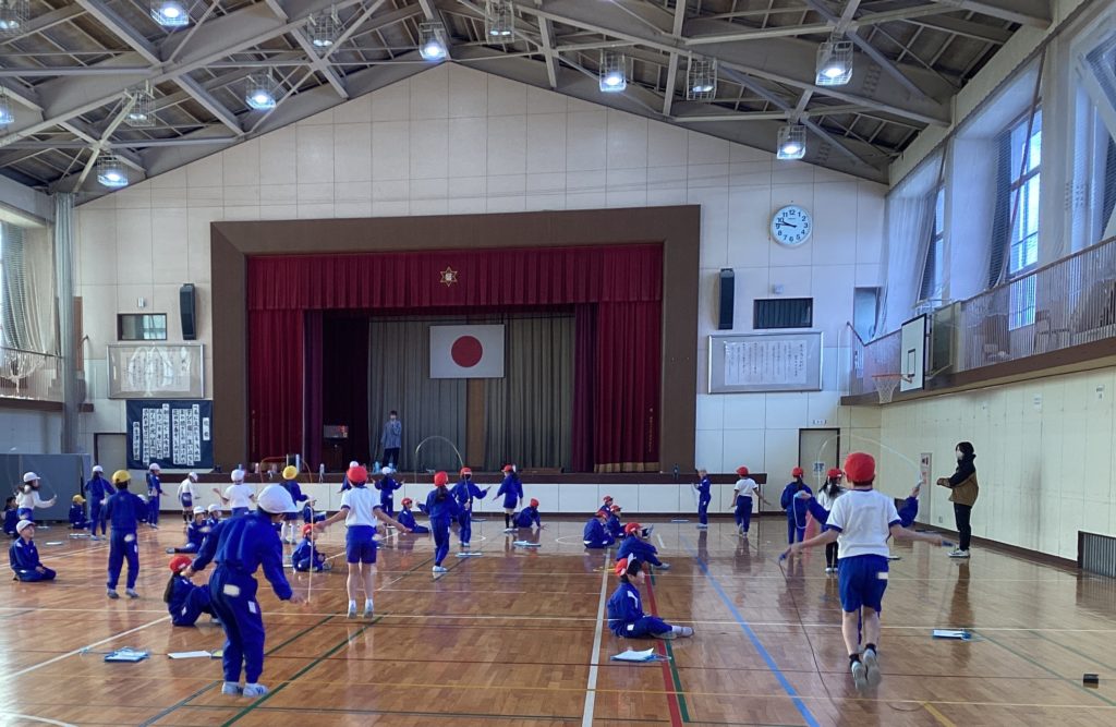 体育館から、最近、元気のいい声が聞こえてきます。今日、休み時間には、「次の時間、なわとび大会だよ。練習しなきゃ!」という声が聞こえてきました。体育館に行ってみると、2年生が、がんばっていました。少し肌寒い気温でしたが、子どもたちは元気いっぱい!練習の成果をしっかりと発揮していました。どの学年も、廊下でなわとびや大なわ等を楽しんでいます。