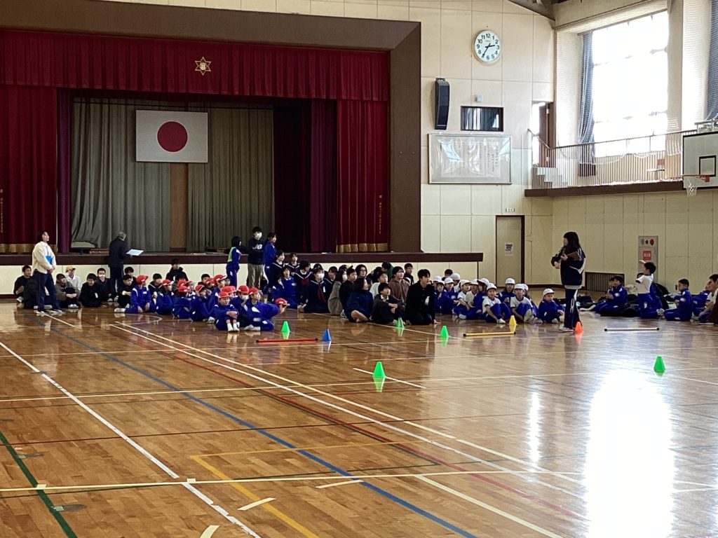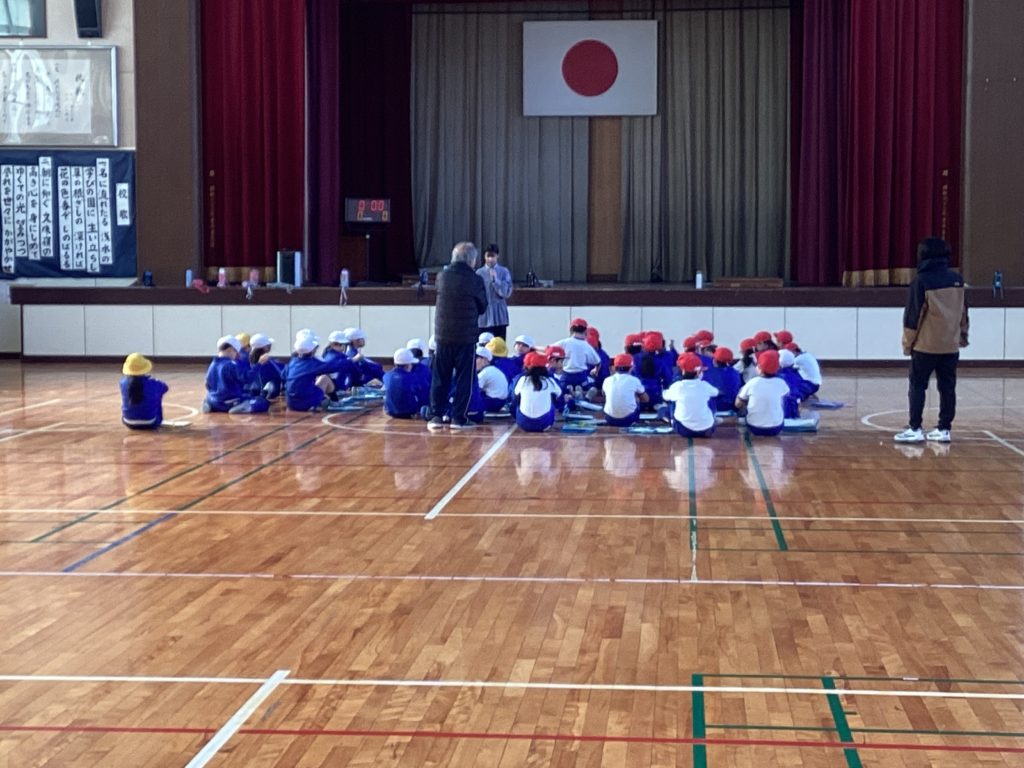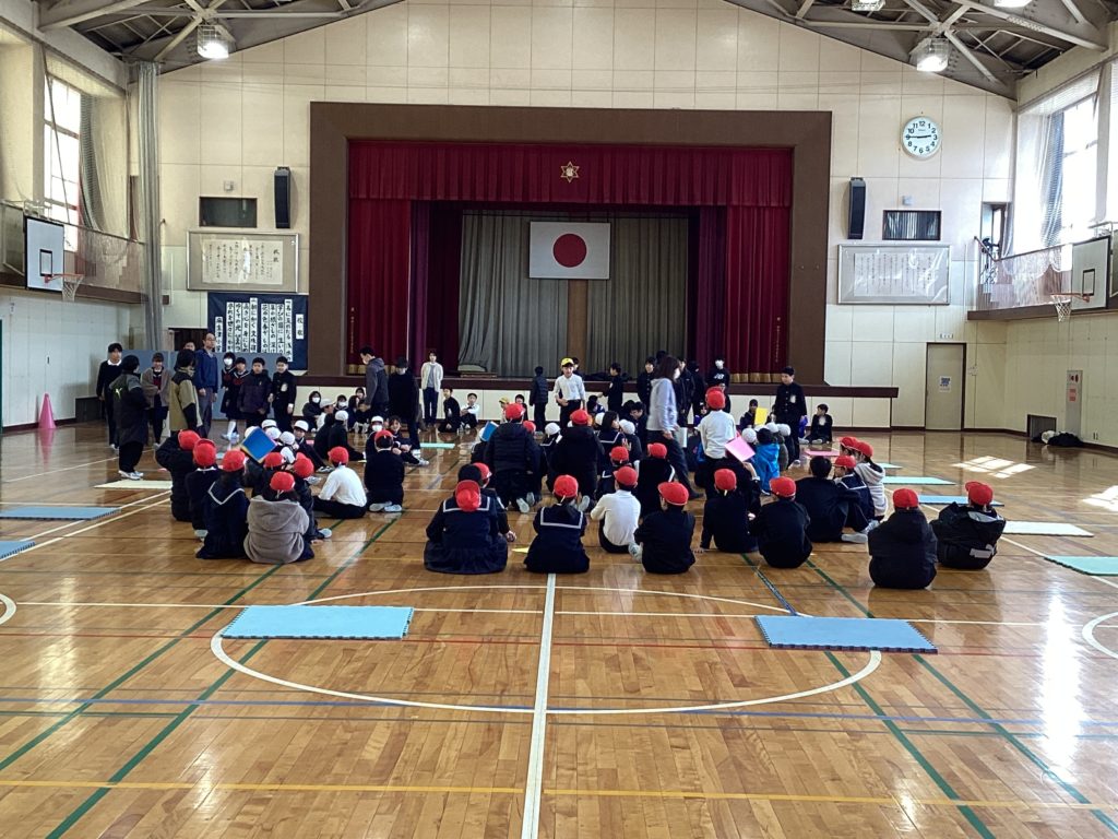 その後、声が聞こえてきたので、見に行くと、今週行われる「6年生にエールを送る会」のリハーサルを行っていました。下級生と6年生が楽しそうにふれあっています。下級生の考えたゲームを一緒に行います。6年生が嬉しそうにしていたのが印象的でした。着々と本番を迎える準備ができています。