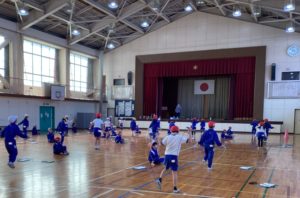 その後、声が聞こえてきたので、見に行くと、今週行われる「6年生にエールを送る会」のリハーサルを行っていました。下級生と6年生が楽しそうにふれあっています。下級生の考えたゲームを一緒に行います。6年生が嬉しそうにしていたのが印象的でした。着々と本番を迎える準備ができています。