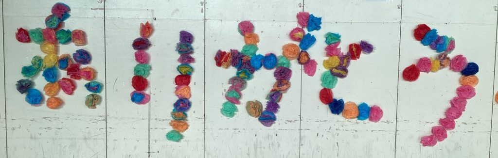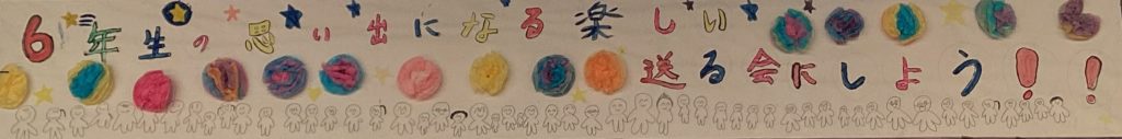 上の看板には、6年生53名、全員の姿が描かれています。6年生一人一人、5年生が心を込めて作成しました!