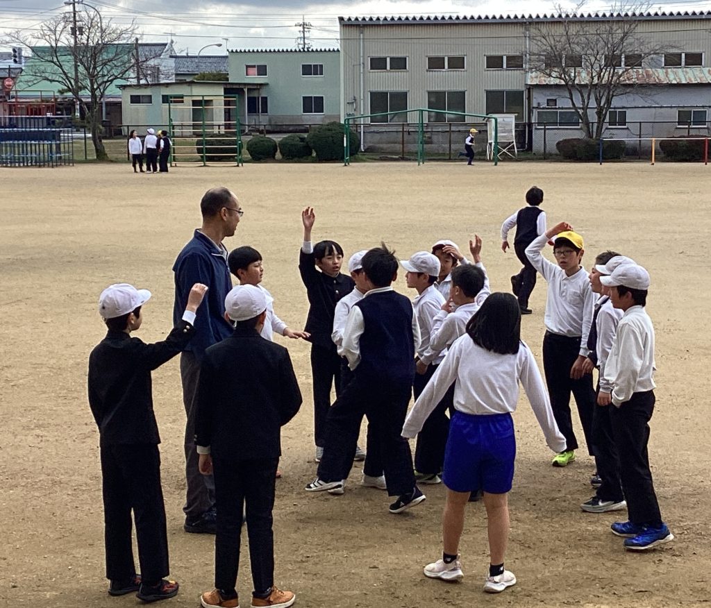 昼休みに、4年生の男の子たちが、校長室の窓から声をかけてくれました。挨拶のできる4年生。かわいらしいです。「校長先生、担任の先生と遊ぶから、待ってます!」と、何人かの子が、嬉しそうに教えてくれました。担任の先生が見えると、さーっと寄ってきて、鬼ごっこの話をし始めました。