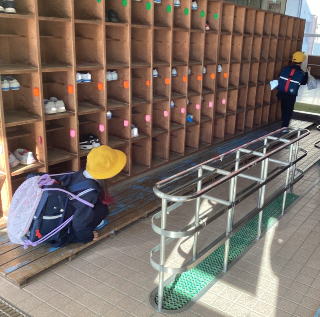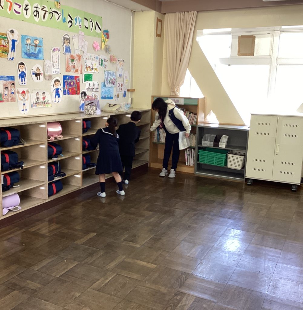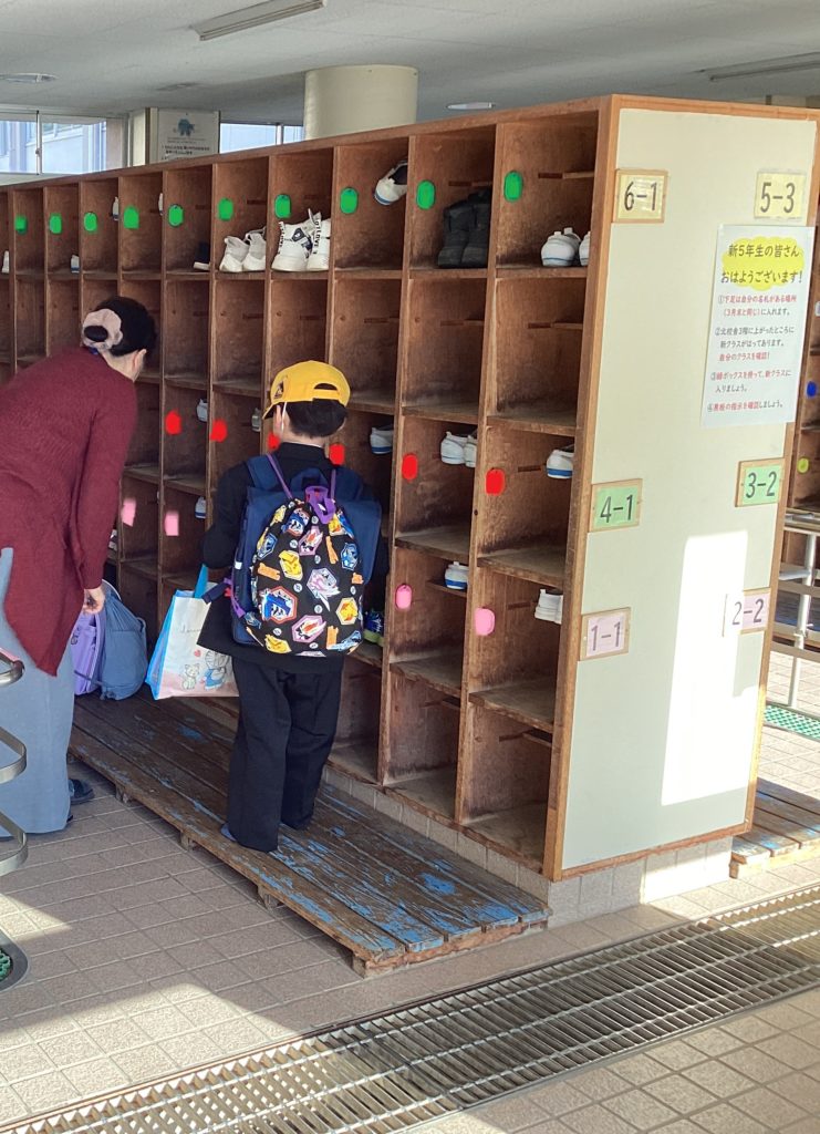 1年生は、自分で下駄箱の場所を確かめ、支援の先生方が見守ってくださっている中、履き物をそろえて下駄箱に入れることができていました。教室では、担任の先生方の温かなご指導の下、一人一人がランドセルを入れる場所を確かめ、自分の手で奥までそろえて入れることができていました。一つ一つ、自分のことは自分でやってみる1年生。今日の1日だけでも、ずいぶん、いろいろなことができるようになりましたね。明日も待っています!
