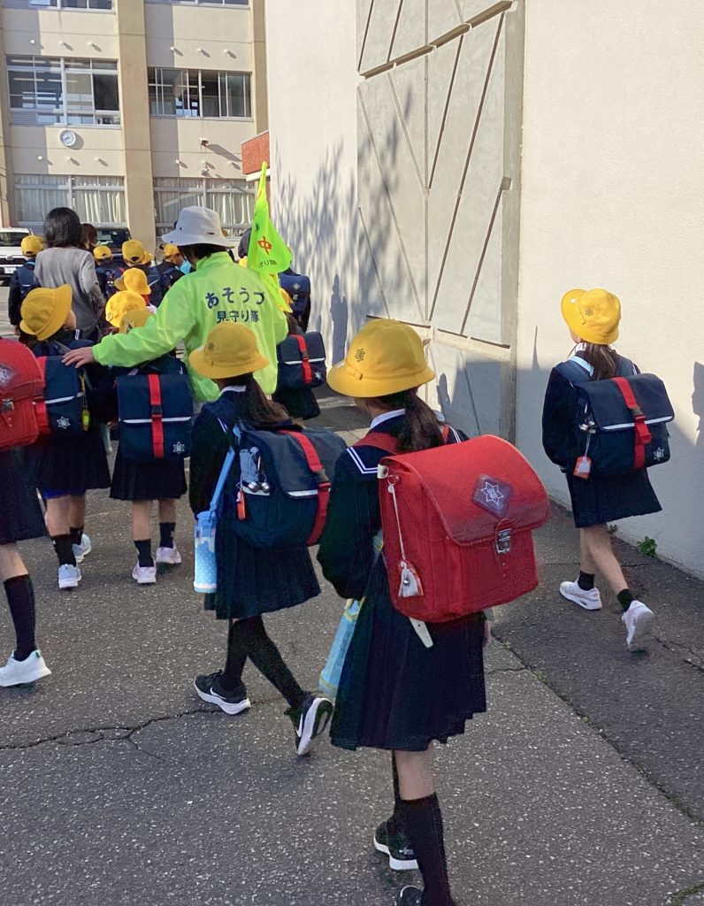 学校が見えてくると、1年生の子供たちは「おはようございます!」と元気に笑顔であいさつしてくれました。そして、お手本となる上級生もまた、いつも以上にしっかりとあいさつをしてくれて、あそうづっ子のいいところばかりが見られる朝となりました。